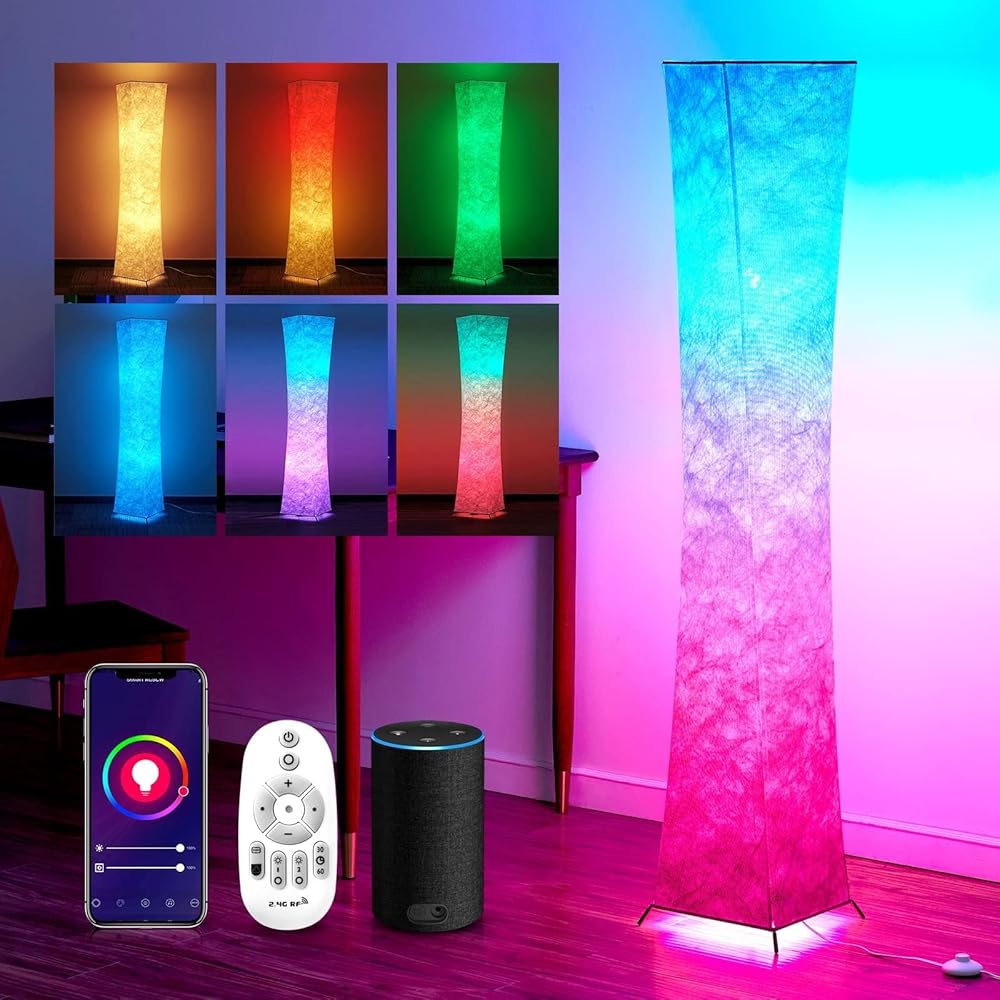 chiphy Floor Lamp, 61" Tall Lamps, 7 Colors Changing and Dimmable RGB LED Bulbs, Remote Control and White Fabric Shade, Cool for Living Room, Bedroom and Play Room