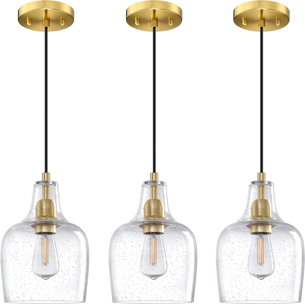 3 Pack 1 Light Hanging Indoor Kitchen Island Pendant Light 6.1" Clear Seeded Glass Pendant Ceiling Light Fixtures Brushed Bronze Finish Modern Farmhouse Dinning Over Sink