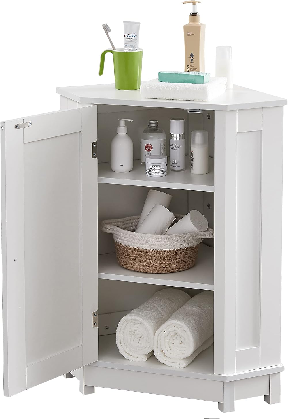 Corner Storage Cabinet, Bathroom Corner Cabinet with Doors and Adjustable Shelf, Freestading Triangular Corner Hutch for Bathroom, Kitchen, Living Room White One Size