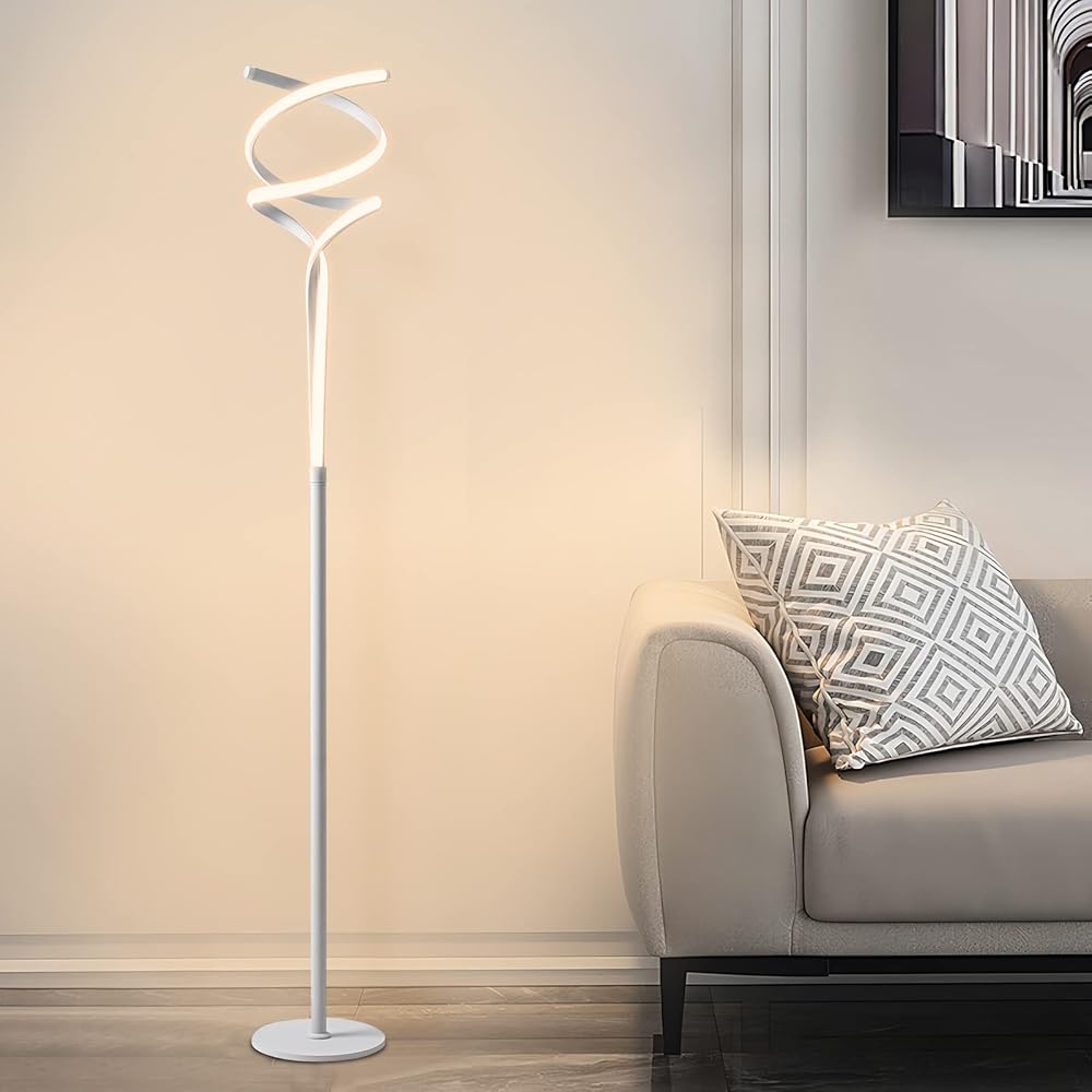 Floor Lamp, LED Modern Floor Lamps for Living Room, 40W-2500LM Lamp for Living Room 3Color Remote Dimmable Standing Lamp, 63" Bright Spiral White Floor Lamp for Living Room Bedroom Office
