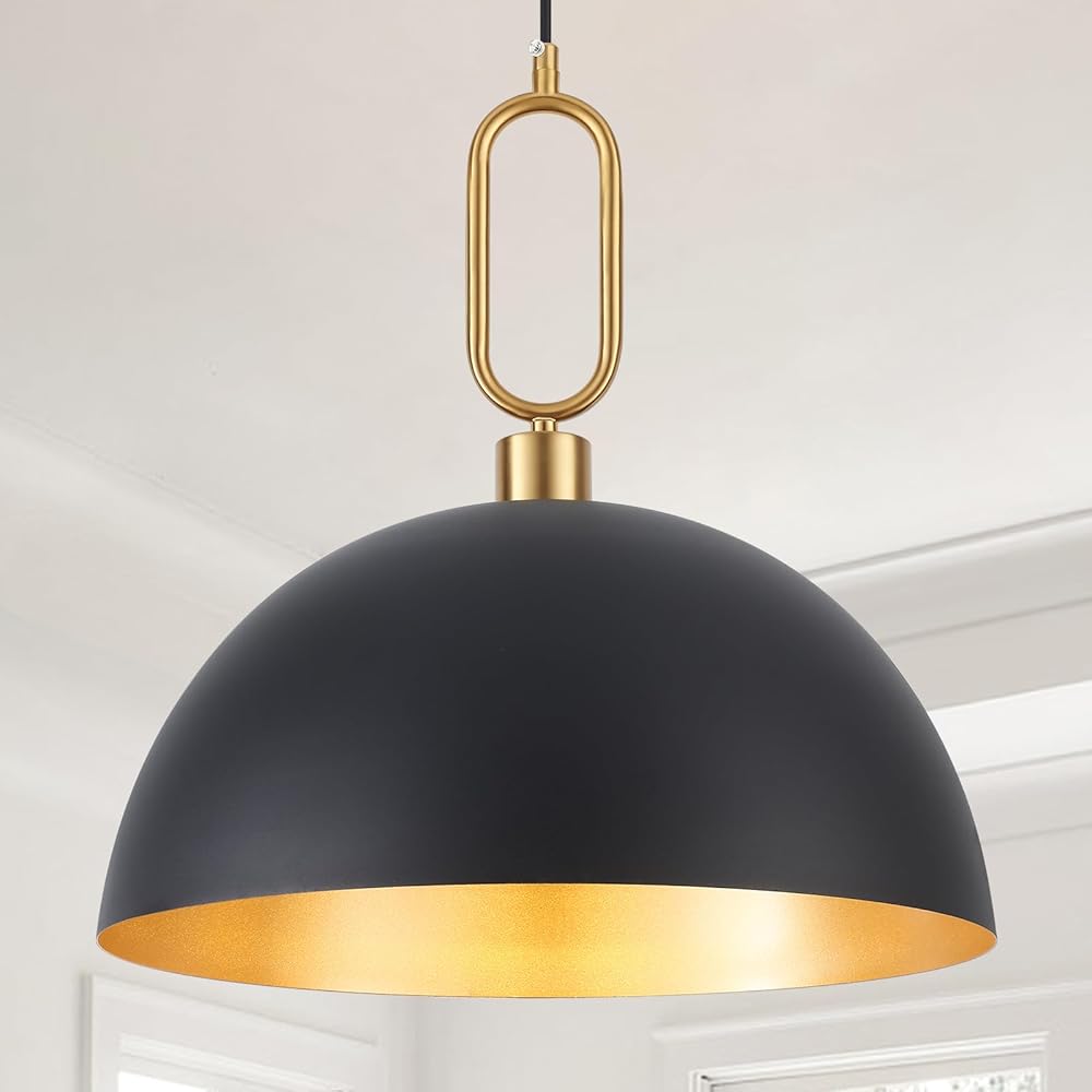 16'' Farmhouse Vintage Pendant Lighting Black and Gold Pendant Light Fixtures Large Dome Chandelier for Kitchen Island, Hallway, Dining Room, Bedroom