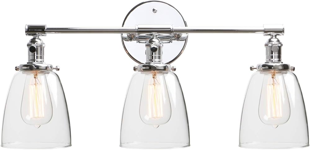Phansthy 3 Light Bathroom Vanity Light Industrial Wall Sconce with ON/OFF Button and 5.6 Inches Dome Clear Glass Shade, Polished Chrome