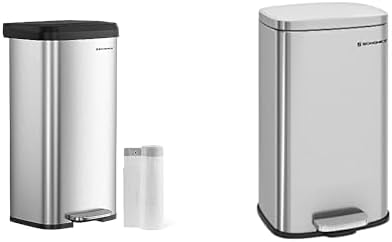 SONGMICS 18-Gallon Kitchen Trash Can with Stay-Open Lid, Step-on Pedal, Large and Space-Saving, Silver ULTB520E68 & 8-Gallon Stainless Steel Trash Can, Hinged Lid, Inner Bucket, Silver ULTB03NL