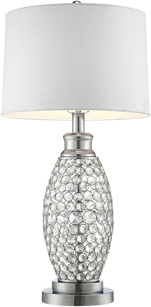 Possini Euro Design Modern Glam Table Lamp 29" Tall Polished Silver Metal Acrylic Beaded White Tapered Drum Shade Decor for Bedroom Living Room House Home Bedside Nightstand Office Kids Family