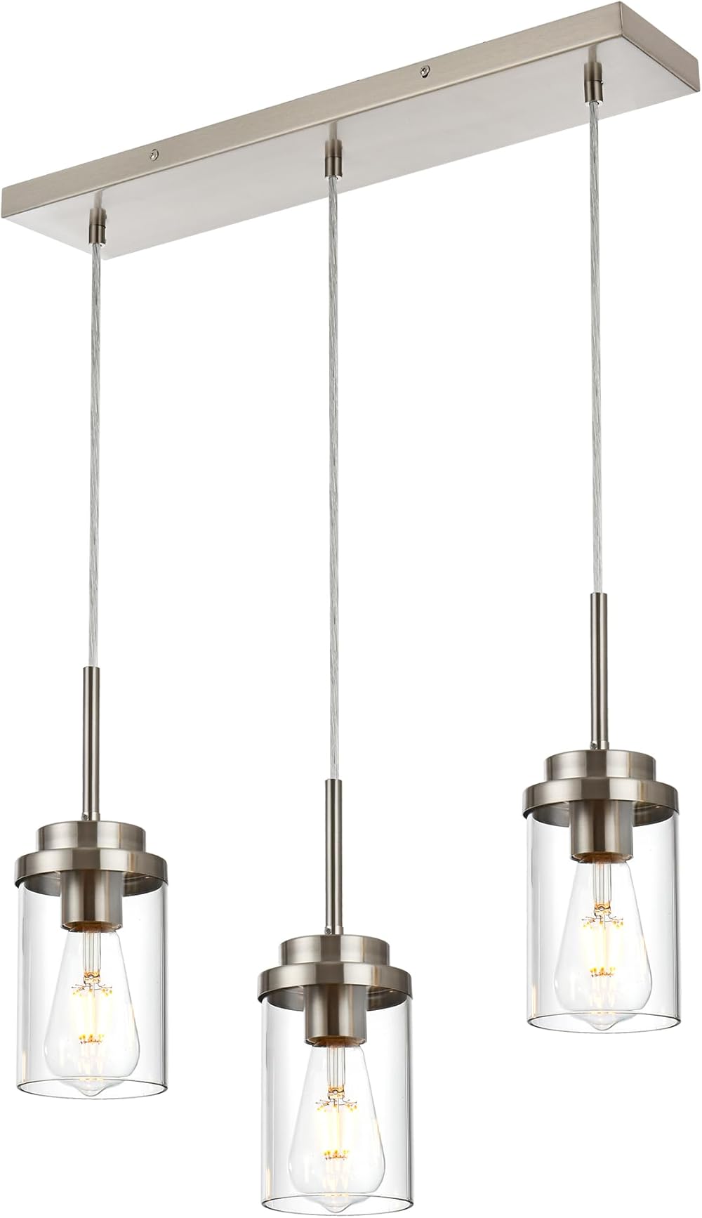 MELUCEE Kitchen Pendant Lighting Over Island 3 Lights Linear Chandelier Brushed Nickel Finish Dining Room Light Fixtures Ceiling Hanging Lamp with Clear Glass Shade, 23.6 Inches Length