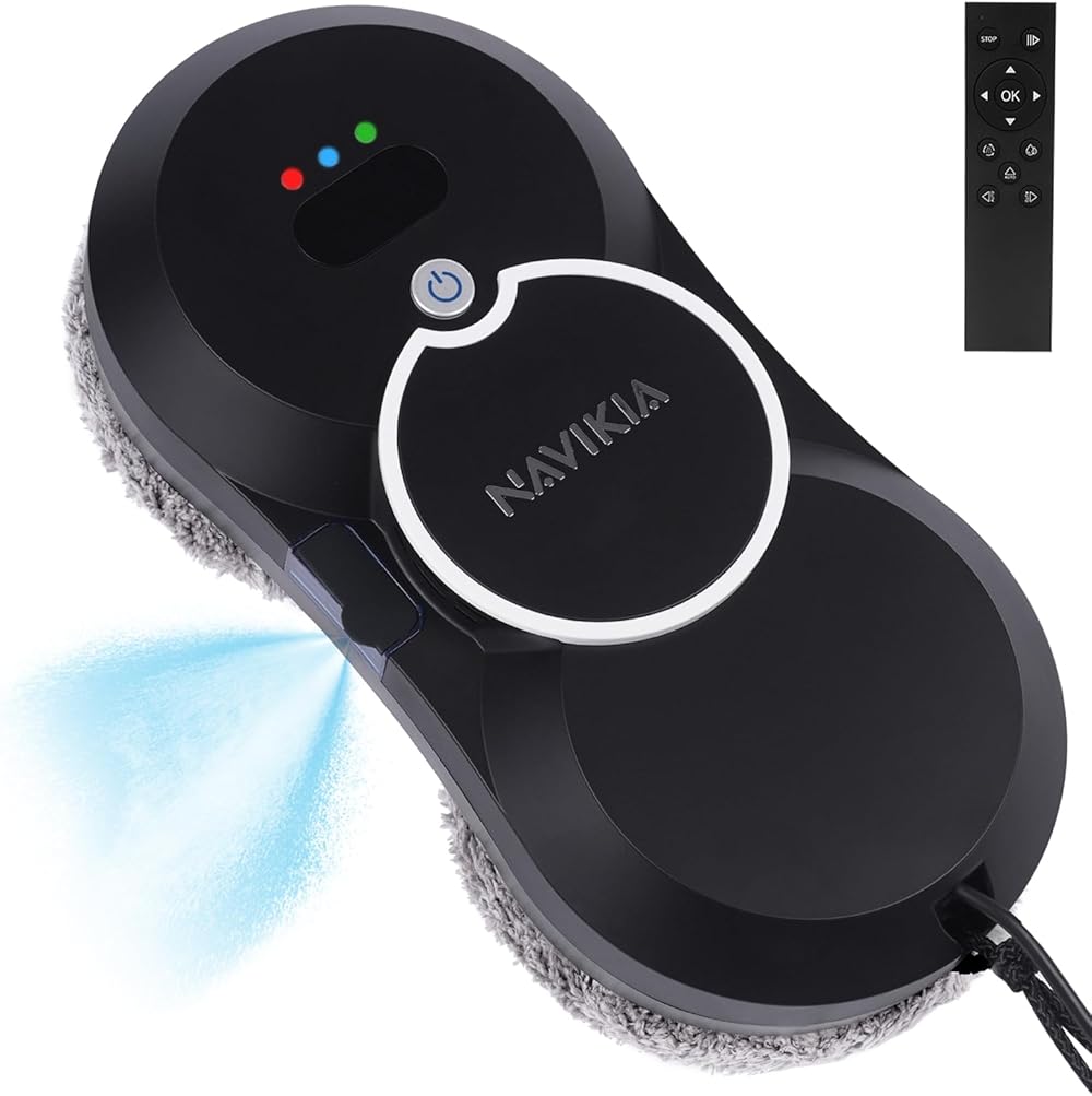 Window Cleaning Robot, Smart Window Vacuum Cleaner Machine with Automatic Water Spray, Strong Suction, Remote Control Robot Window Washer for Interior/Exterior Window/Tiles/Glass Door (Black)