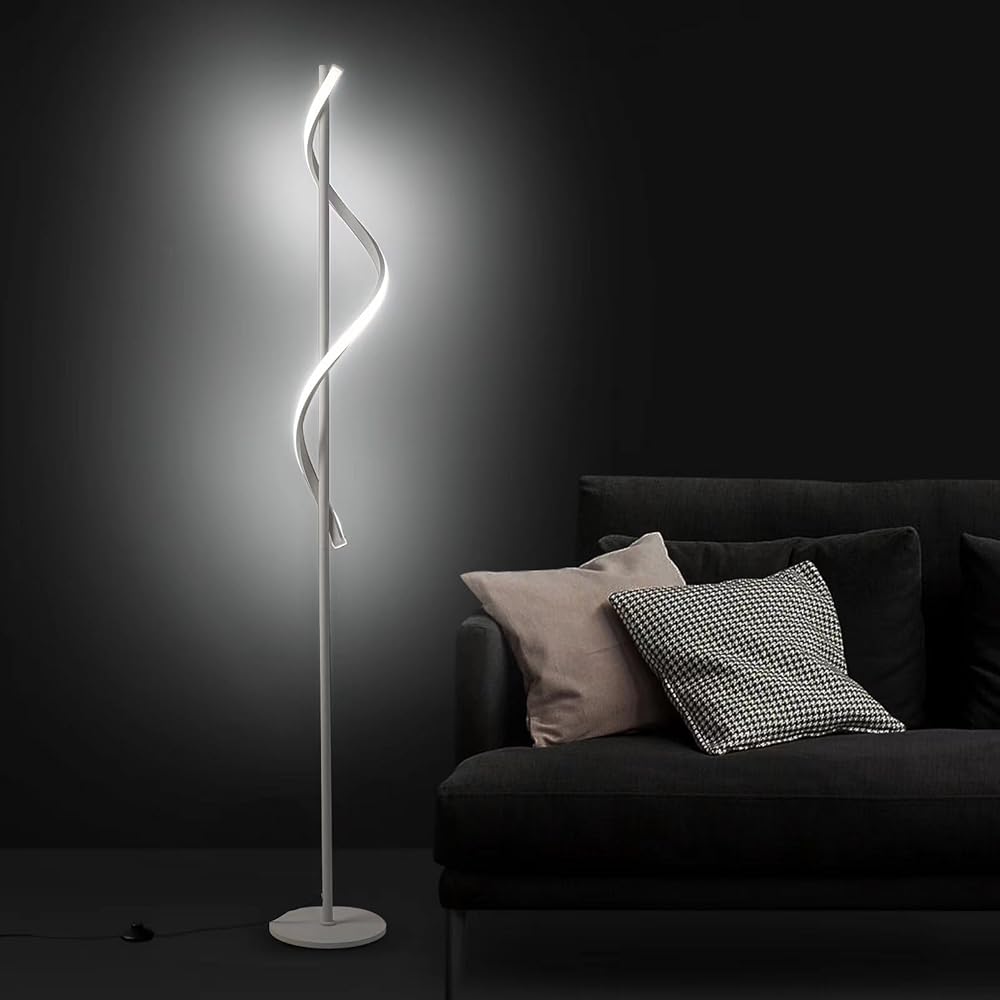 Floor Lamp, LED Modern Floor Lamps for Living Room, 63"-3-Color-2500LM-40W Remote Dimmable Control Standing Lamp, Spiral White Floor Lamp for Living Room Bedroom Office Children's Room.