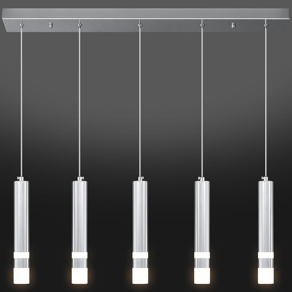 5-Light Dining Room Modern Pendant Light Kitchen Fixture Dimmable LED Chrome Mini Pendant Lighting fo Kitchen Island Study Pendant Lights