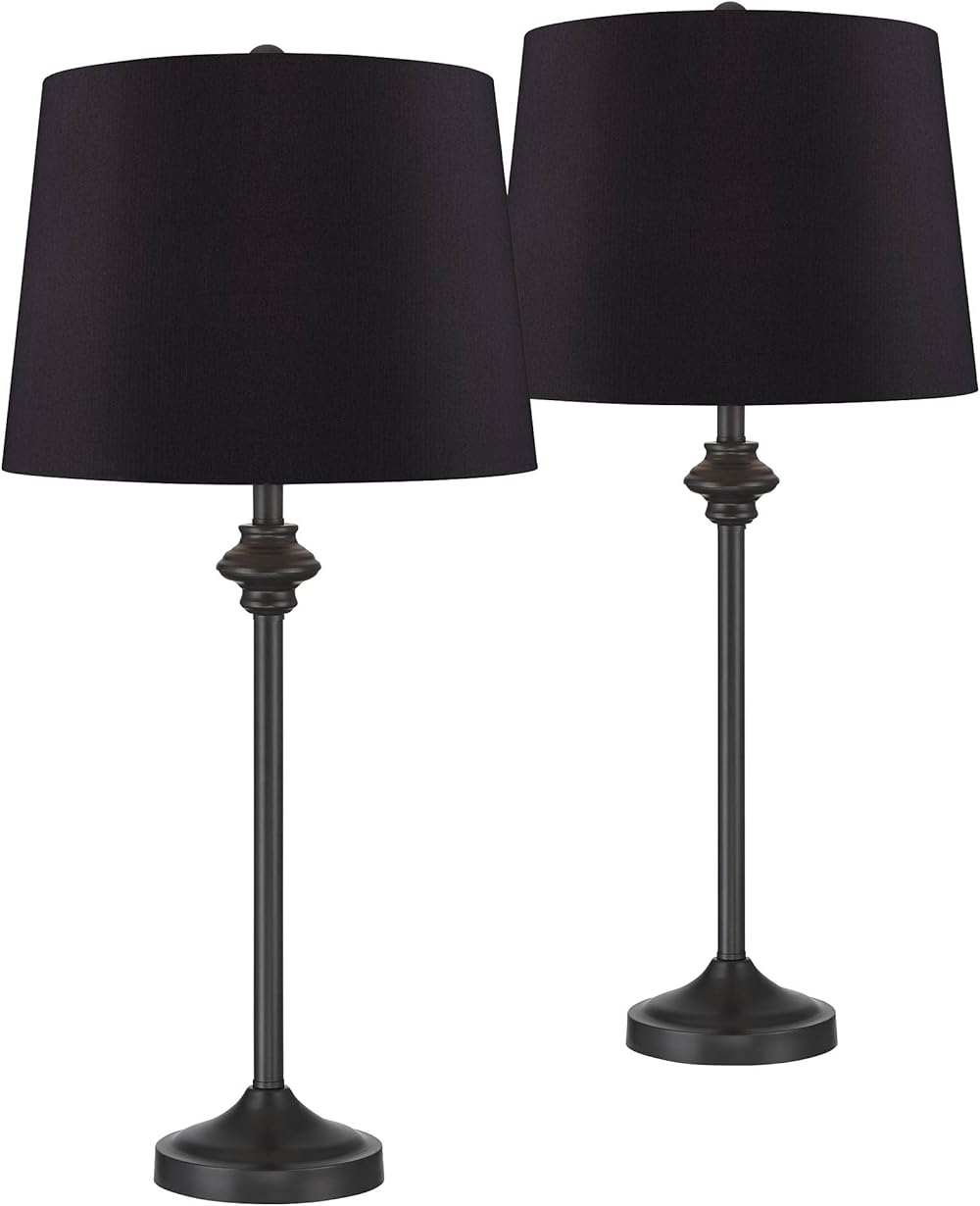 360 Lighting Lynn Modern Industrial Buffet Table Lamps 26" Tall Skinny Set of 2 Dark Bronze Brown Metal Black Faux Silk Drum Shade for Living Room House Home Dining Office Entryway Family Decor