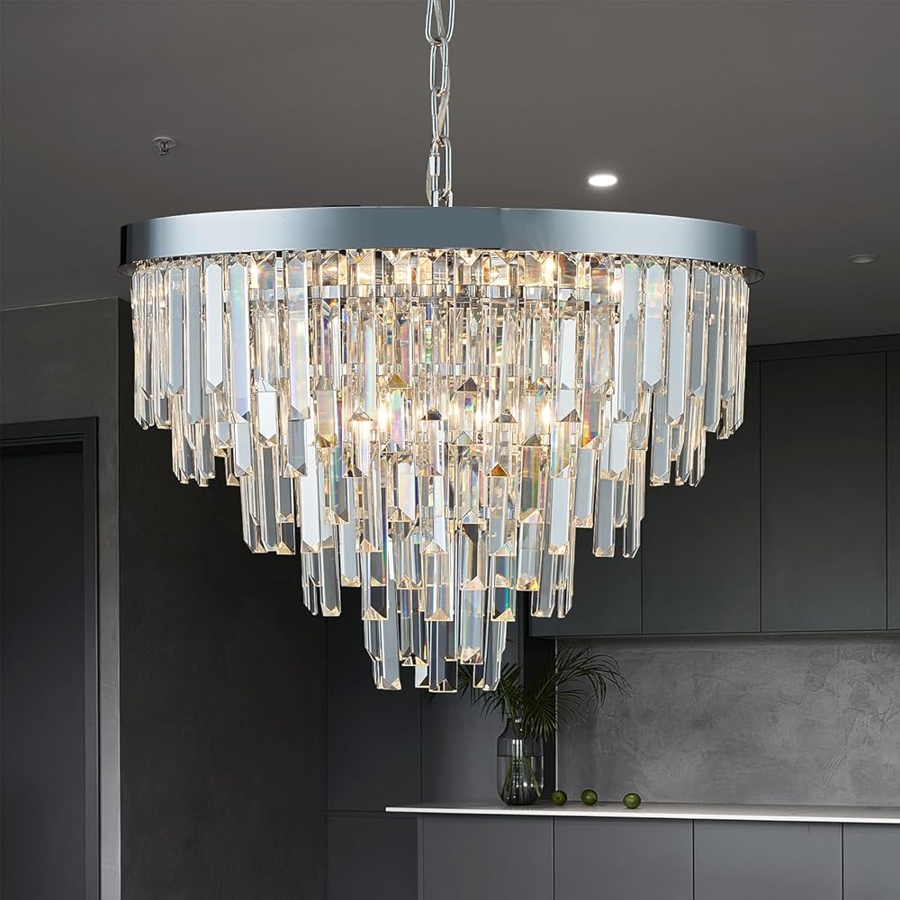 Chrome Crystal Chandelier, 20" Modern Chandelier 5 Tiers 8 Lights Pendant Lighting Round Chandelier for Kitchen Island Dining Room Entryway Bedroom Office