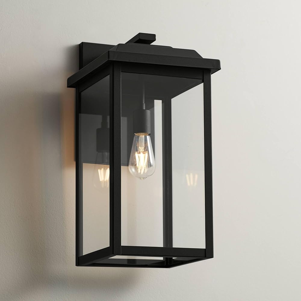 Eastcrest Farmhouse Rustic Wall Light Sconce Textured Black Metal Hardwired 10 1/4" Fixture Clear Glass Shade for Bedroom Bedside Bathroom Vanity Living Room Hallway House Home