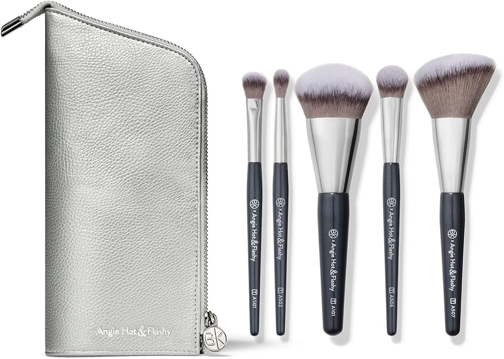 BK BEAUTY BRUSHES - ANGIE HOT & FLASHY Travel Brush Set with Pouch - Foundation Makeup Brushes - Brush for Liquid or Cream Foundations - Under-Eye Concealer | Bronzer, Blush & Highlighter Makeup Brush