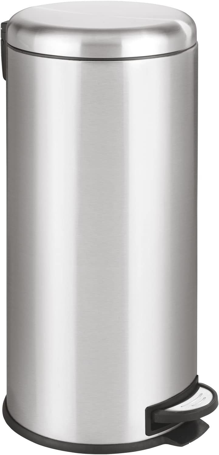 WENKO, Silver, 9.84 x 14.96 x 12.6 in Trash Can with Lid and Pedal, Garbage Bin for Kitchen, Anti-Fingerprint, Easy Close, Stainless Steel, 7.93 Gal, 12 x 25.2 x 14.76