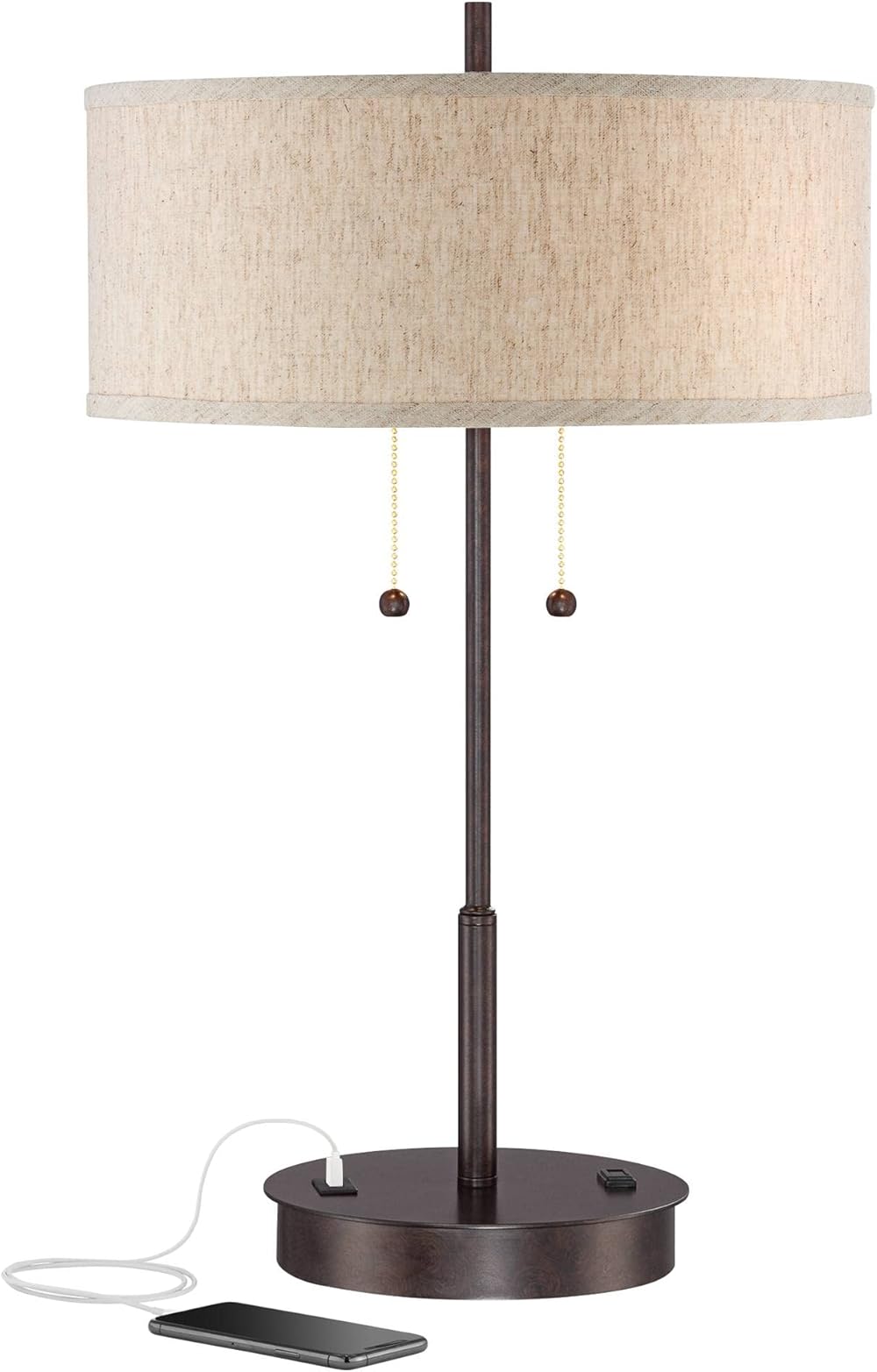 360 Lighting Nikola Modern Accent Table Lamp with USB and AC Power Outlet in Base 23 1/2" High Bronze Fabric Drum Shade for Bedroom Living Room House Desk Bedside Nightstand Office Family