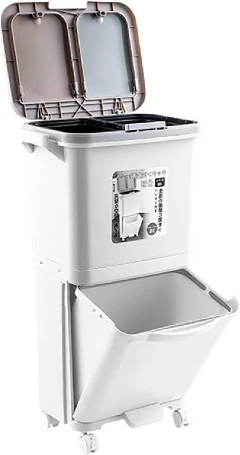 Plastic Kitchen Trash Can with Lid,Odor Protection Sorting Waste Bin with Pedal and Removable Bucket Rectangular Slim Trash Can with Wheels for Home and Kitchen, 2 Tiers