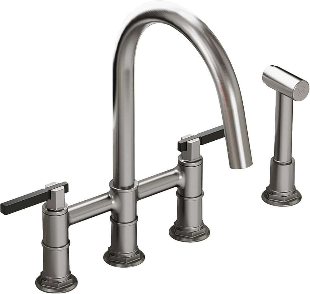 BWE Bridge Kitchen Faucet with Side Sprayer and High Arc Spout Centerset 2 Handle Farmhouse Kitchen Sink Faucet Spot-Free Soild Brass Brushed Nickel