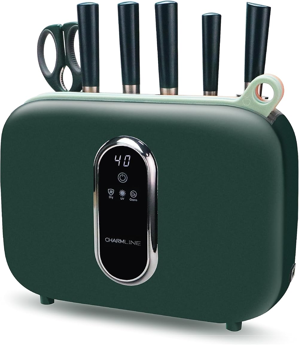 Charmline Smart Cutting Board and Knife Set, Self Cleaning 3 Color Coded Chopping Boards, 4 Knives, Scissors and Knife Sharpeners, Drying Holder Organizer for Kitchen, Smart Home Gadgets,Green