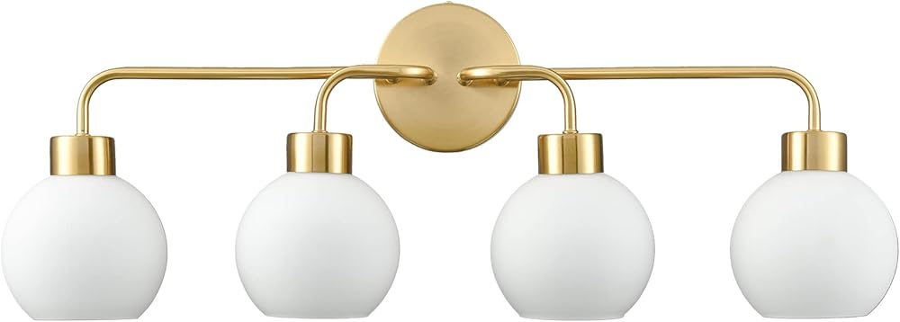 YOBOLE Gold Bath Vanity Light 4-Light Wall Sconce Opal Glass Globe Wall Lights Over Mirror