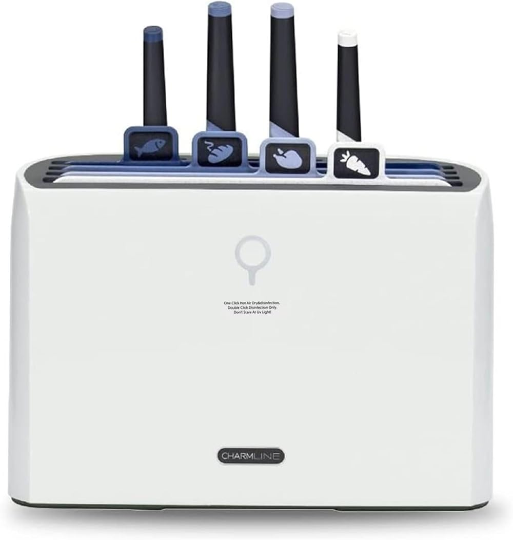 Charmline Smart Cutting Board And Knife Set With Holder, 4 Color Coded Chopping Boards, 4 Knives, Drying Holder Organizer For Kitchen, Smart Home Gadgets,Blue