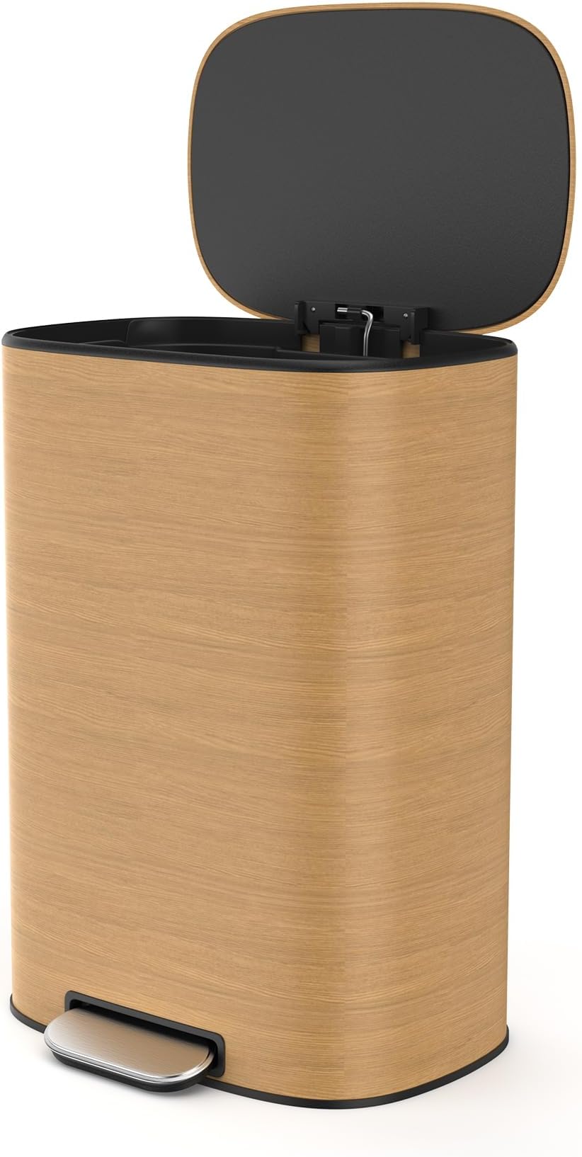 Step Trash Can with Inner Liner 13 Gallon 50L Kitchen Foot Pedal Operated Soft Close Trash Can - Stainless Steel Ellipse Bustbin - Wood