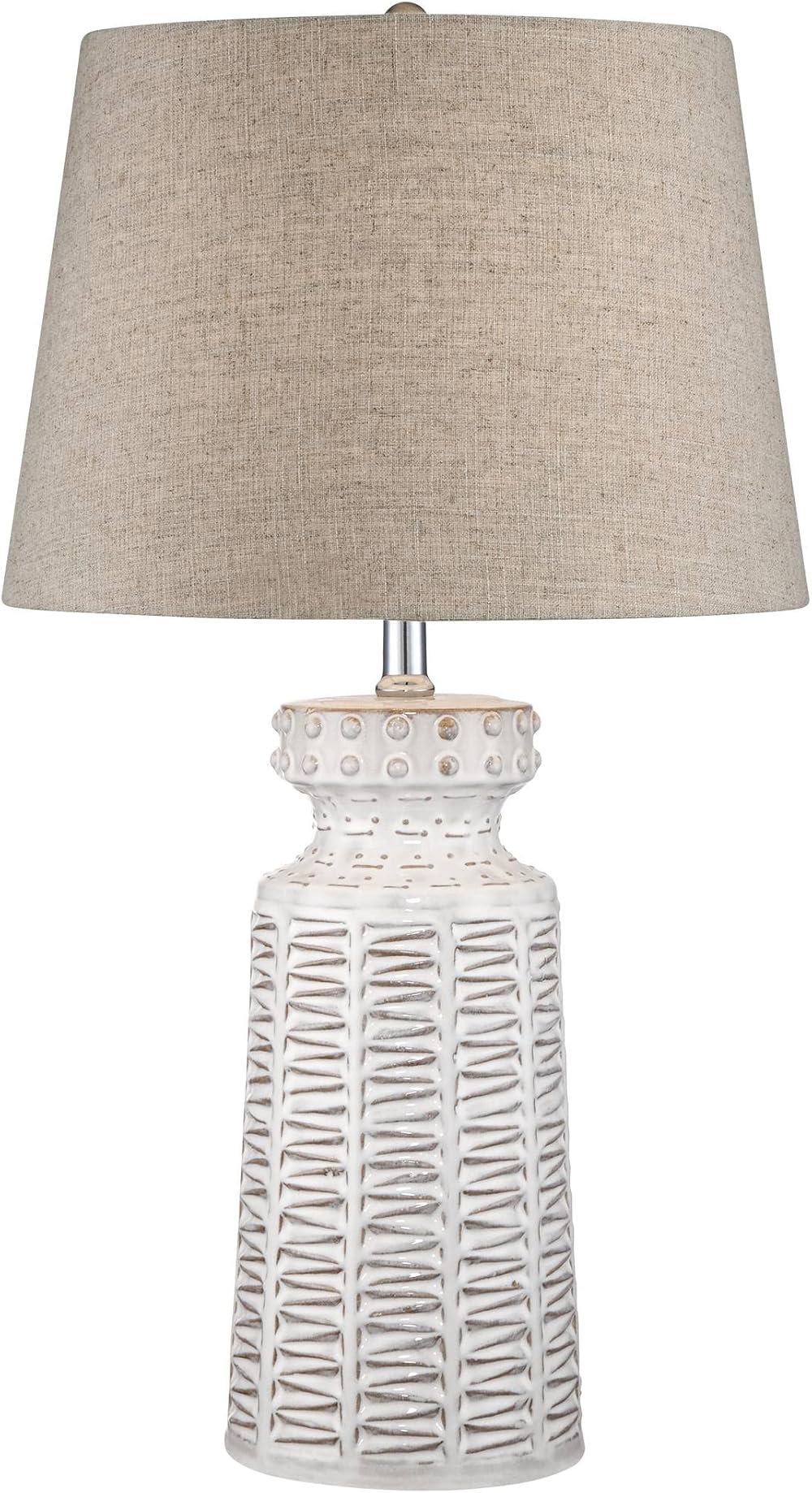 360 Lighting Helene Country Cottage Table Lamp with Table Top Dimmer 26" High Cream White Ceramic Tapered Tan Linen Drum Shade for Living Room Bedroom House Bedside Nightstand (Color May Vary)