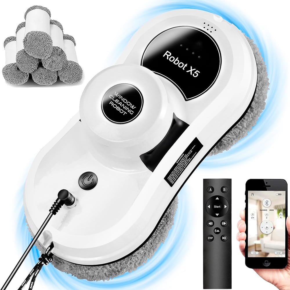 Window Cleaning Robot, X5 Smart Window Vacuum Cleaner Glass Cleaning Robotic with APP & Remote, Intelligent Automatic Window Cleaner for Indoor/Outdoor Windows Mirror Table Tile (White)