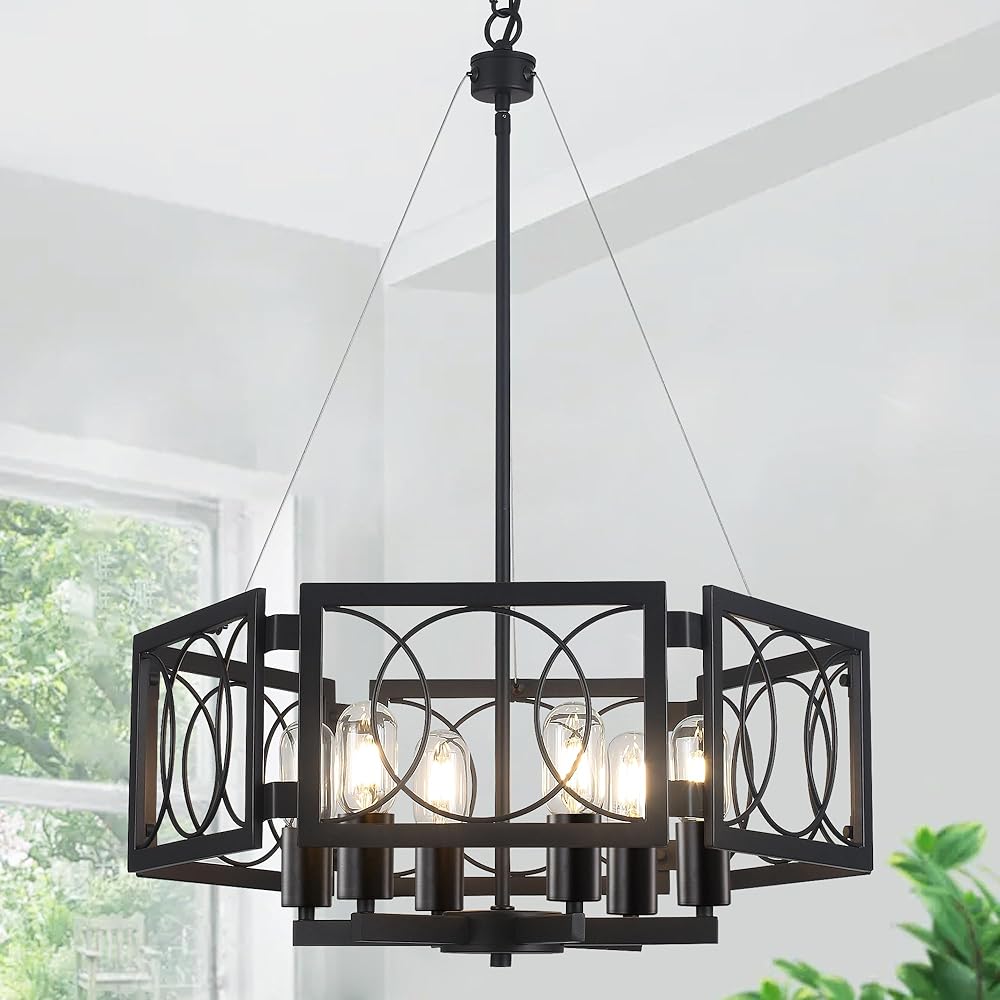 22.83'' Black Farmhouse Chandelier for Dining Room, Large Modern Industrial Geometric Pendant Lighting Fixture Adjustable Hanging Lights for Kitchen Island Foyer Hallway