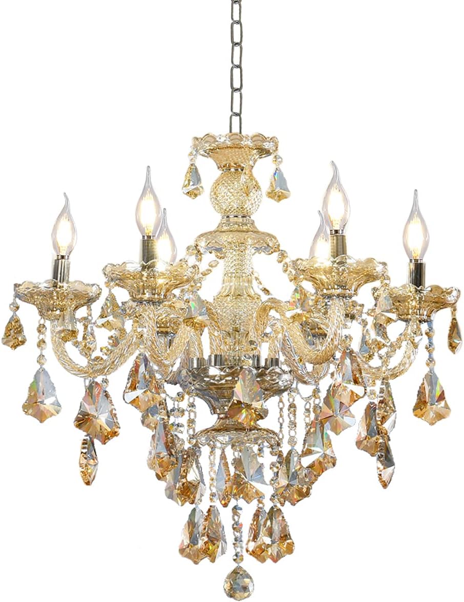Modern K9 Crystal Chandelier Cognac 6 Lights, E12 Base Candle Crystal Pendant Lighting Fixture, Elegant Crystal Ceiling Light for Dinning Living Room Bedroom Hallway (6 Lights)