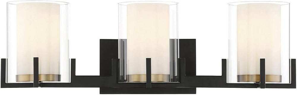 8-1977-3-143 Eaton 3-Light Bathroom Vanity Light in Matte Black with Warm Brass Accents (24" W x 7.5" H)