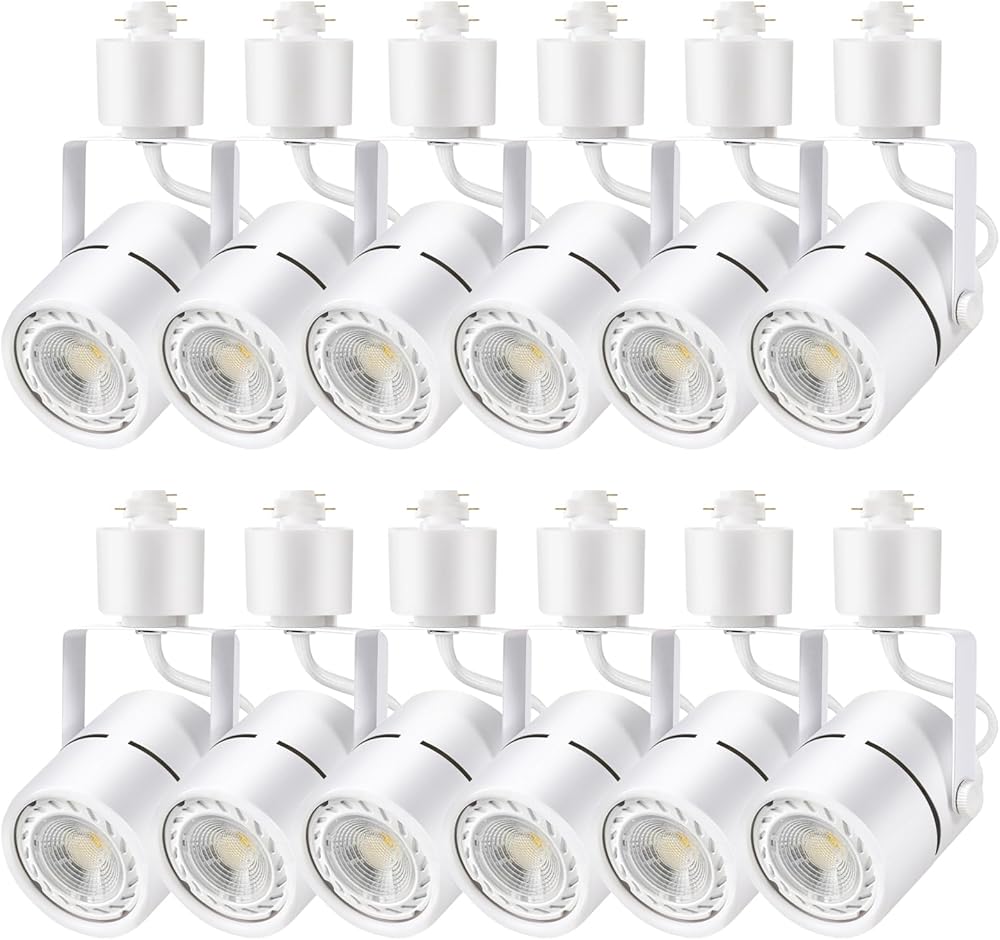 10W LED Track Lighting Heads - Adjustable Track Lighting Fixtures for Retail Artwork - Cool White - H Type Track Lights - 120V 24° Angle Halo Type - Pack of 12 (White)