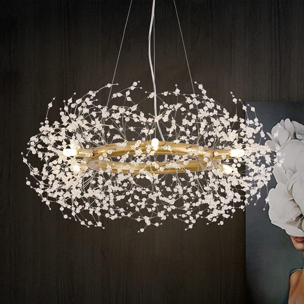 Macarena Gold Crystal Chandelier Firework,Modern Large Round Chandeliers Light Fixture Circle Pendant Hanging Lighting for Dinning Room Bedroom Living Room Entryway Closet Bathroom Kitchen