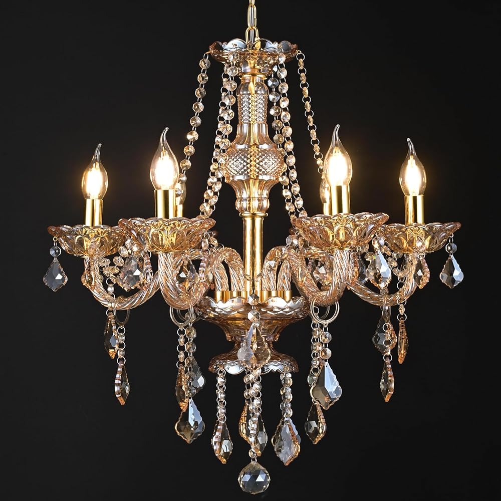 Modern Crystal Chandelier 6 Lights, Luxury K9 Crystal Ceiling Pendant Light,Crystal Light Fixtures Kitchen Living Room Bedroom Corridor (6-Light)