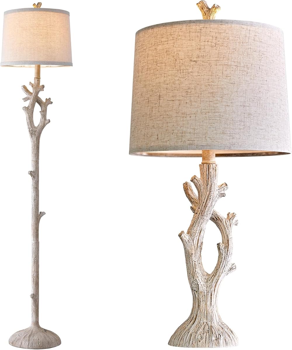 OYEARS Farmhouse Table Lamps Set of 2 & Floor Lamp for Living Room Bedroom Bedside Tree Lamp Nightstand End Table Lamps Vintage Natural Style
