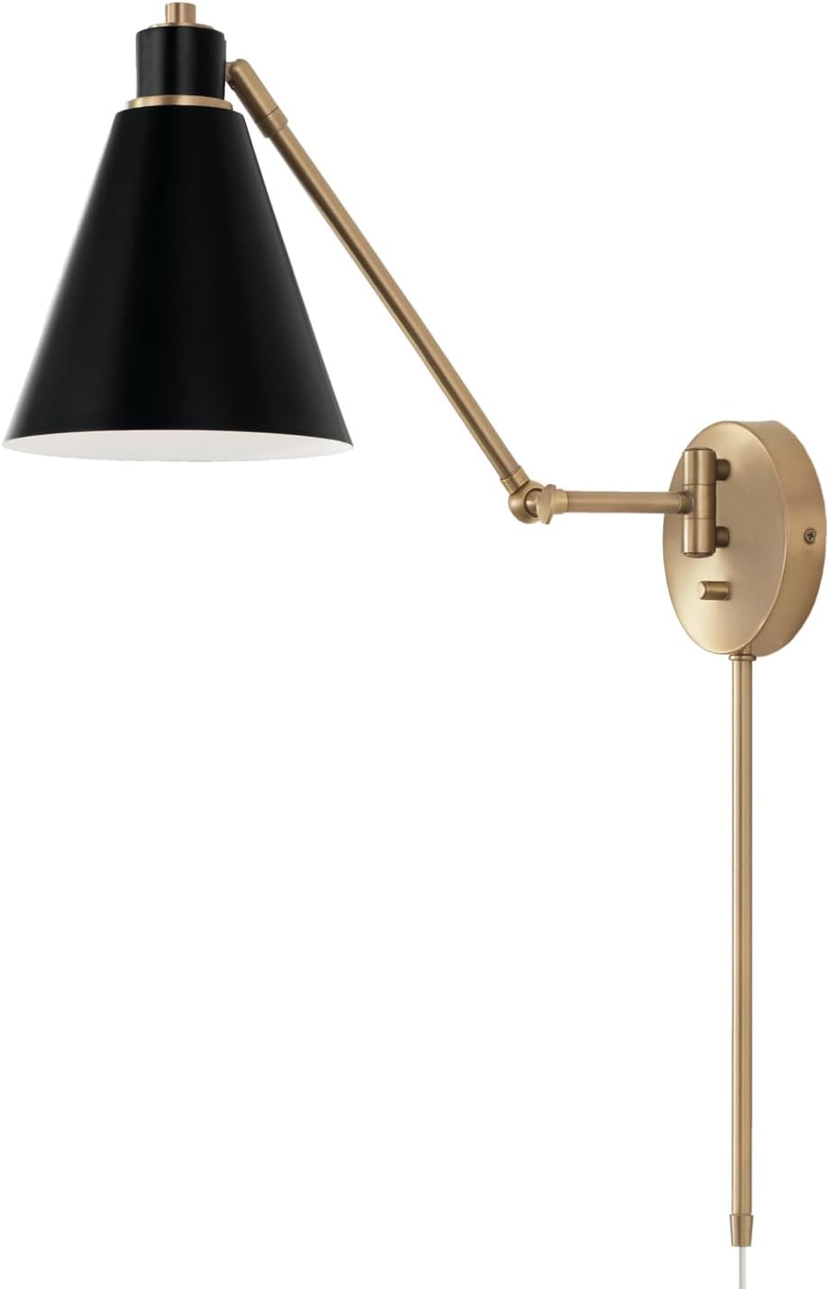 650111AB Bradley Modern Metal Cone Articulating Wall Sconce, Plug-in Optional, 1-Light 100 Watt, 26" H x 7" W, Aged Brass and Black