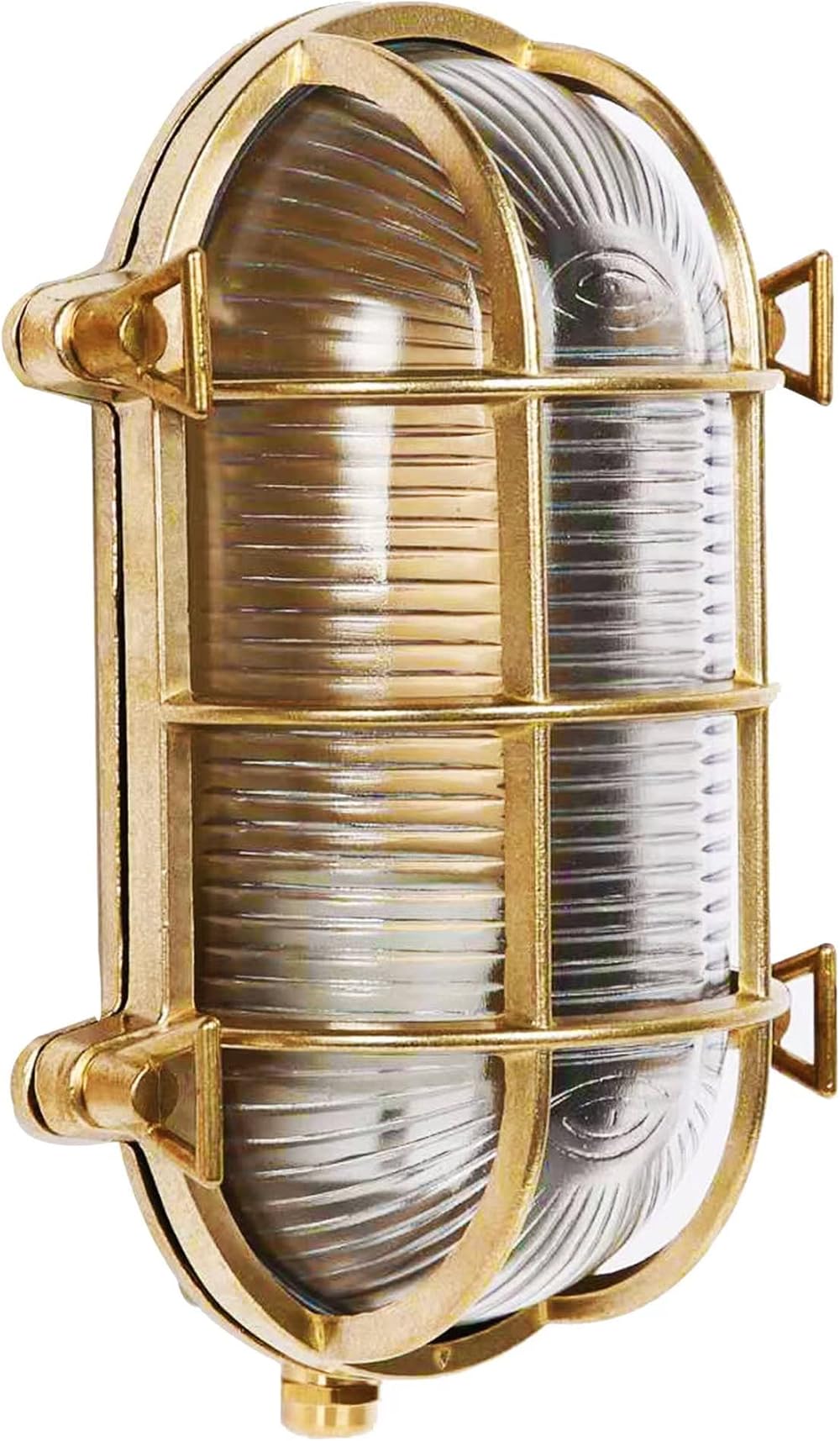 Pure Brass Bulkhead Light,Grid Oval Nautical Wall Light,Brass Lampshade,Ceiling Mount Light,Brass Sauna Light Waterproof IP54,Rust Resistant,for Cafe,Bar,Porches,Patios,Restaurants