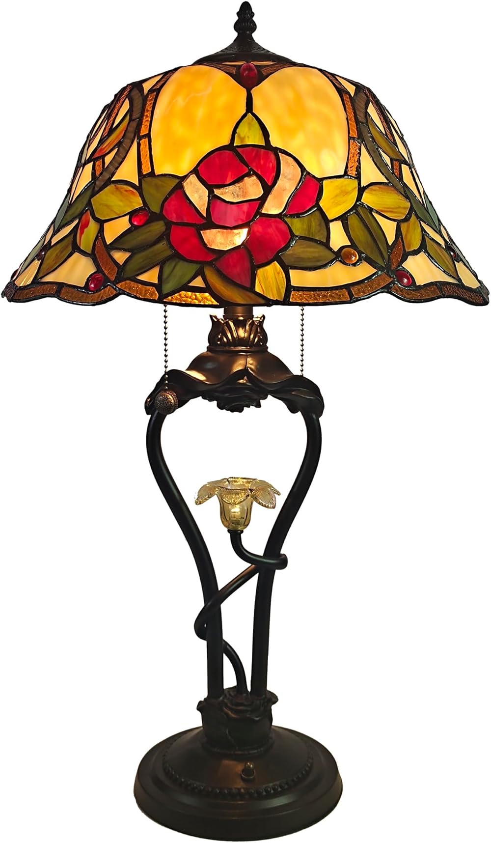 Dale Tiffany Traditional Tiffany Style Table Lamp 26" Tall Amber Floral Petal Bronze Finish w/LED Night Light Base Handcrafted Art Glass Shade for Home Décor, Living Room, Bed Room & Office