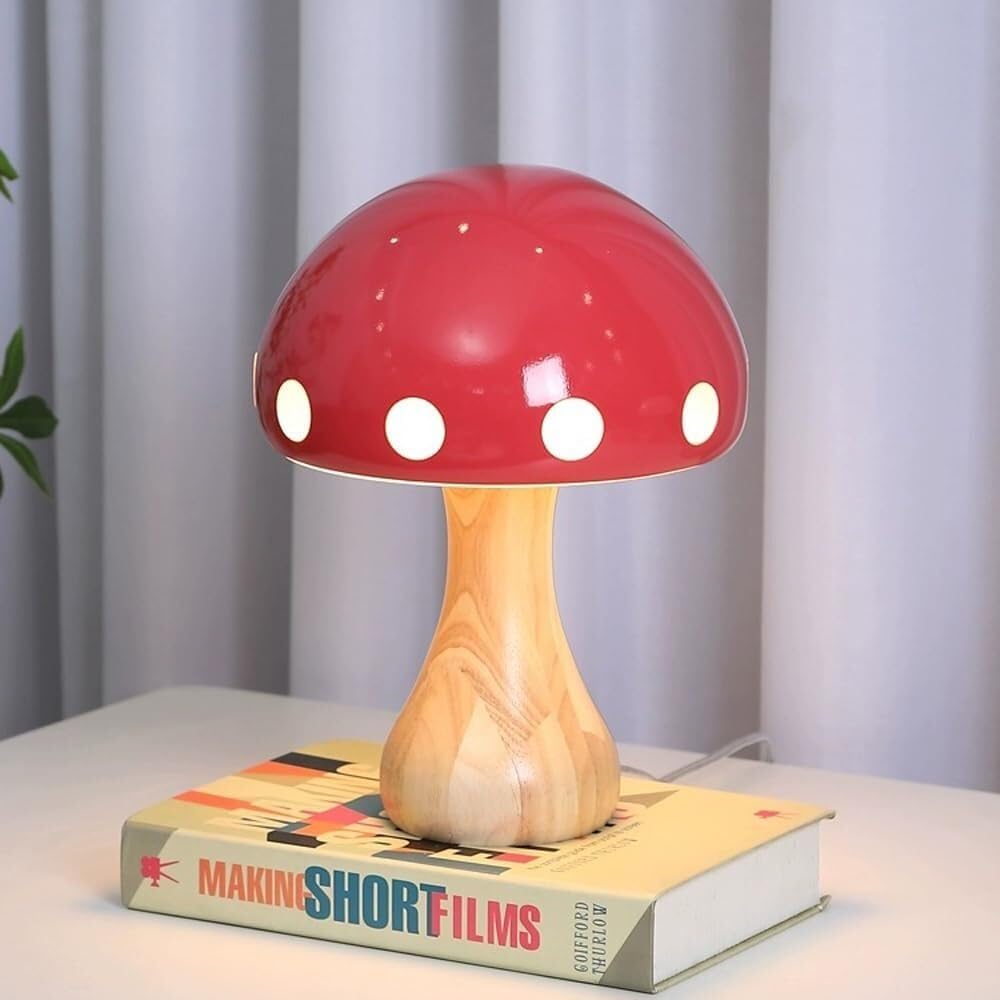 Wood Base Mushroom Table Lamp Small,Bedside LED Nightstand Lamp for Bedroom,Living Room,Kids Room, Plug in 5W Aesthetic Cute Small Resin Night Light for Girls,Women's Decor (Orange/Cream) DQXYCTXC(Ora