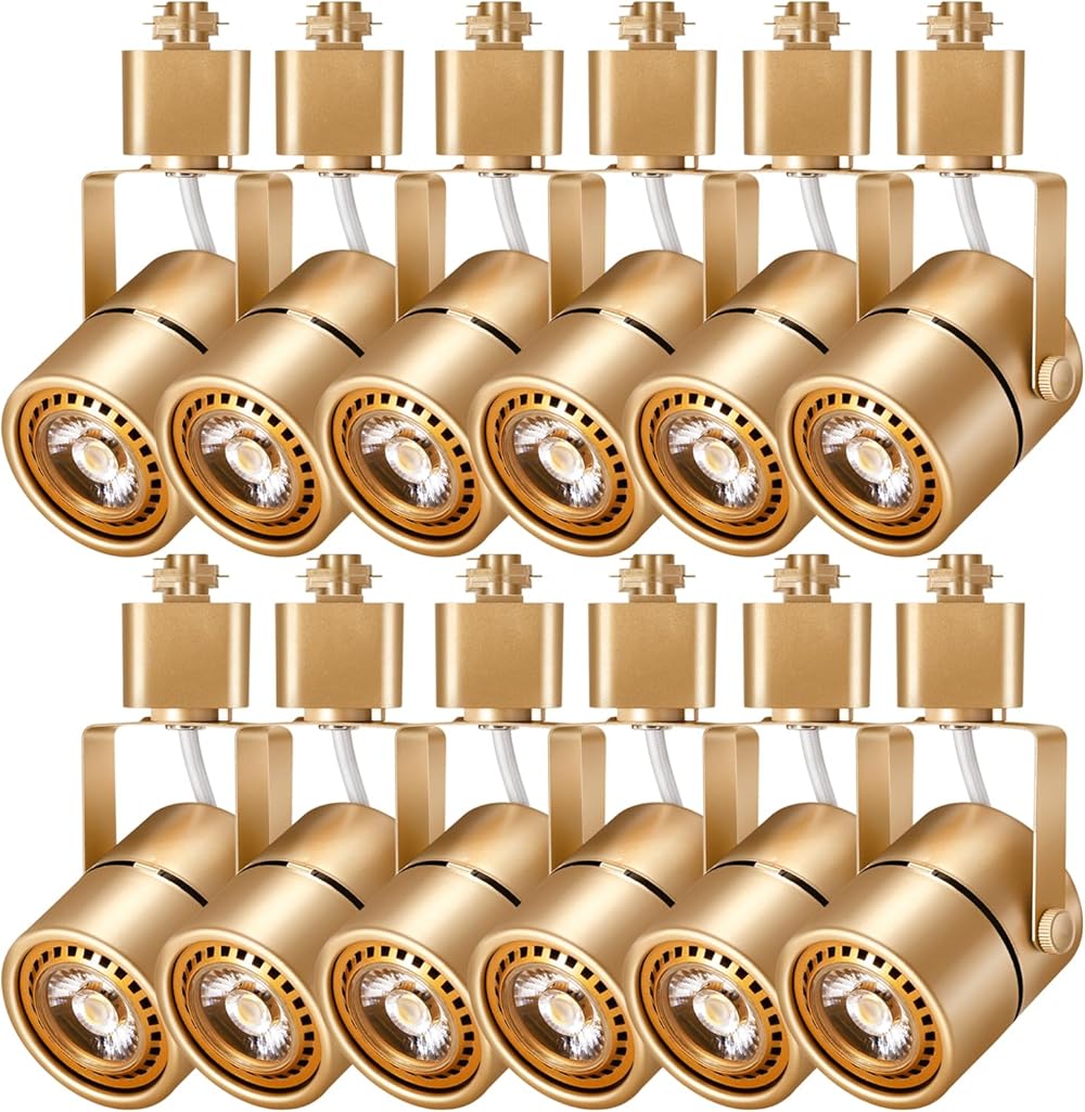 10W Dimmable Gold Track Lighting Heads H Type LED Track Light Replacement Fixtures Bright 4000K Cool White Ceiling Spotlight for Accent Task Art, Flicker Free CRI90+ 24° 1000lm, Pack of 12