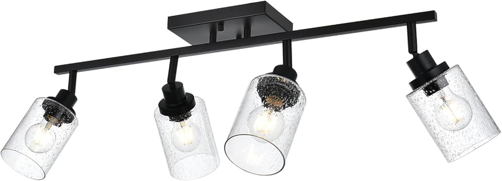 4-Light Track Lighting Kit Bathroom Wall Light Fixtures, Black Directional Ceiling Light for Kitchen Dining Room Bedroom Office, Seeded Glass Shades