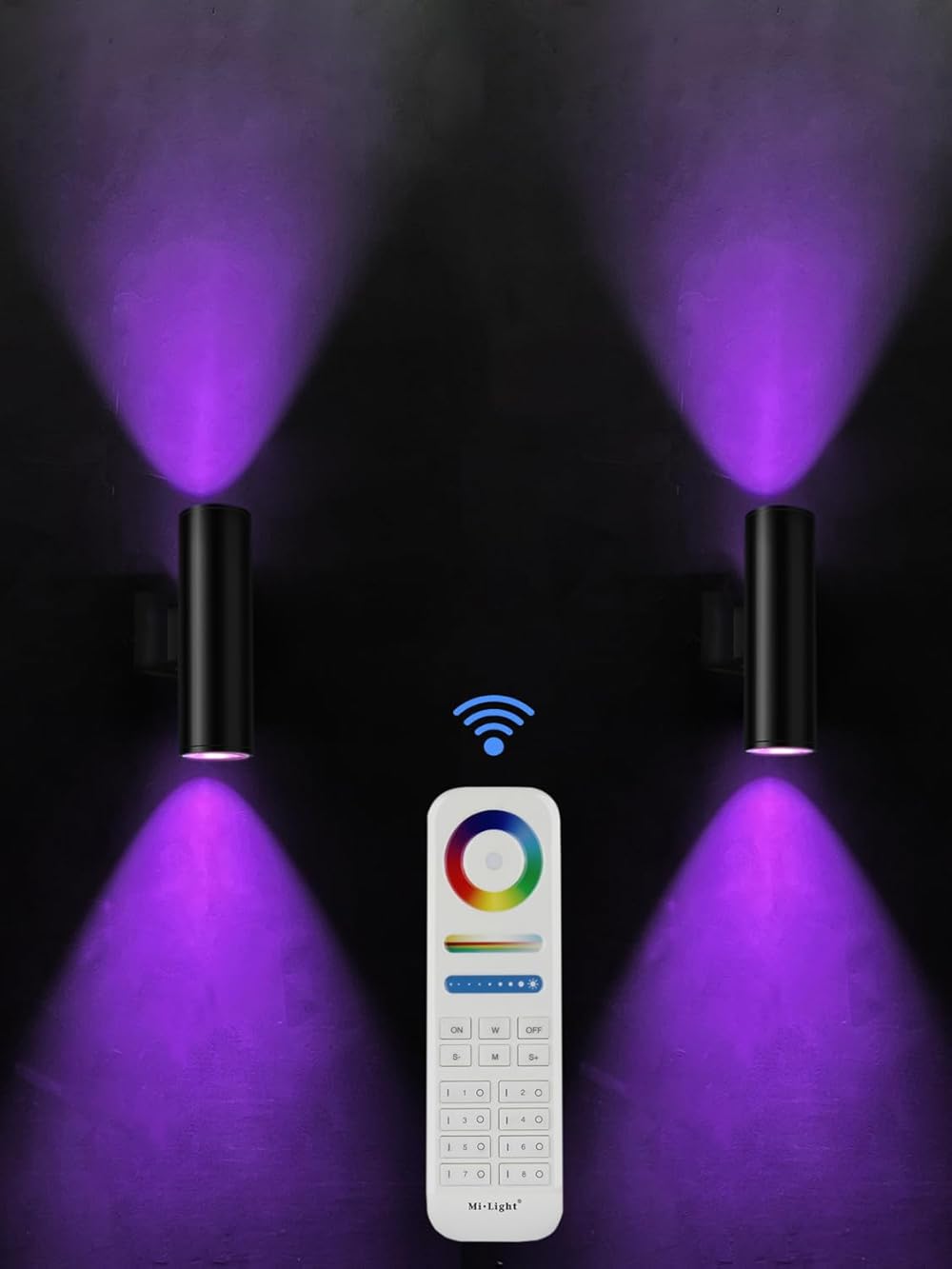 Exterior Double Up Down Outdoor Wall Lights,Mi.Light Remote Control RGB Color Changing 1000lm Warm White 3000k RGBW Cylinder Outdoor Wall Light,Smart LED Exterior Lighting (2 PACK)