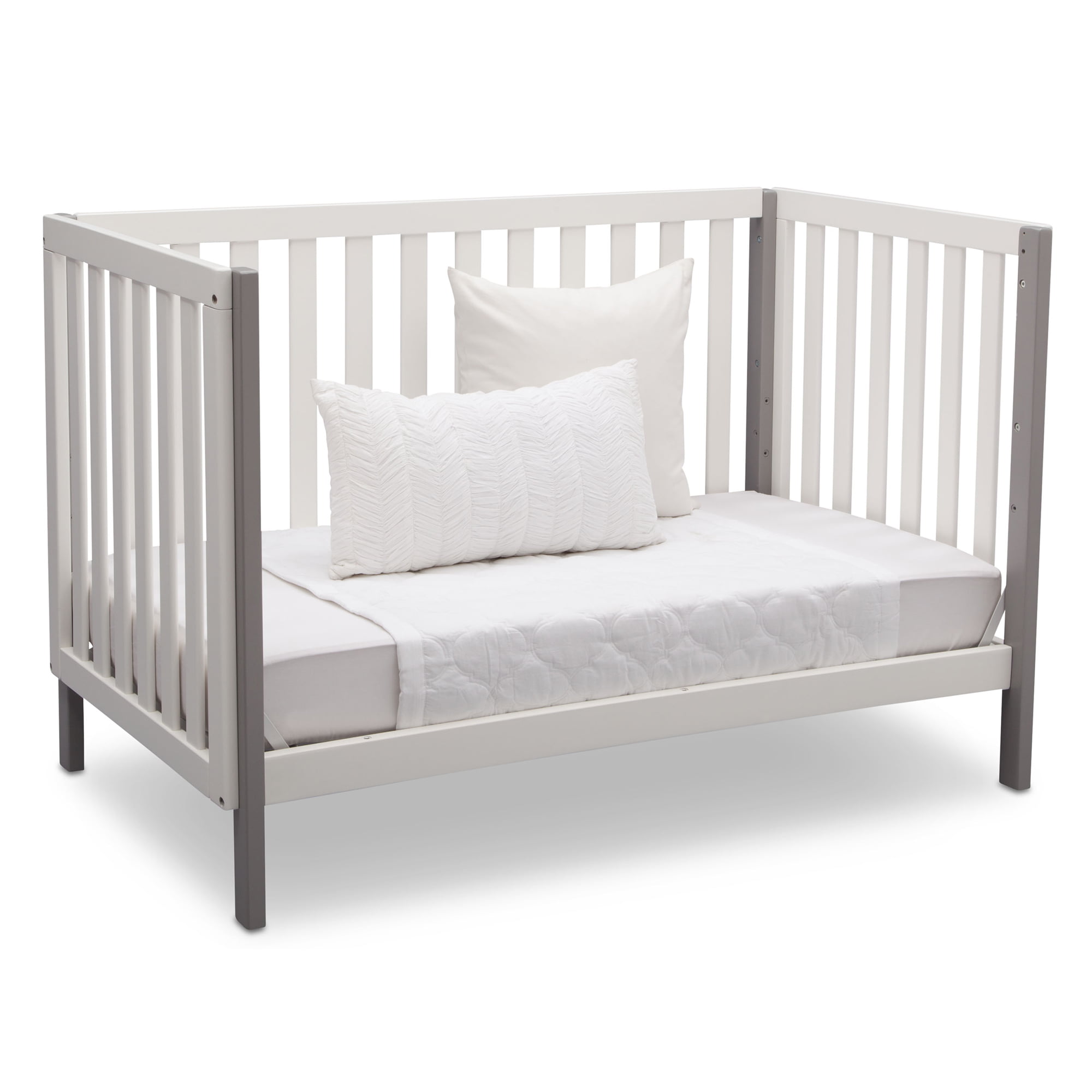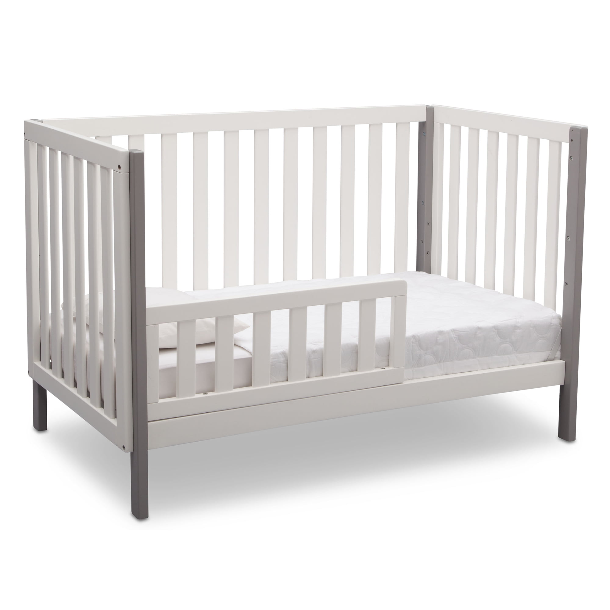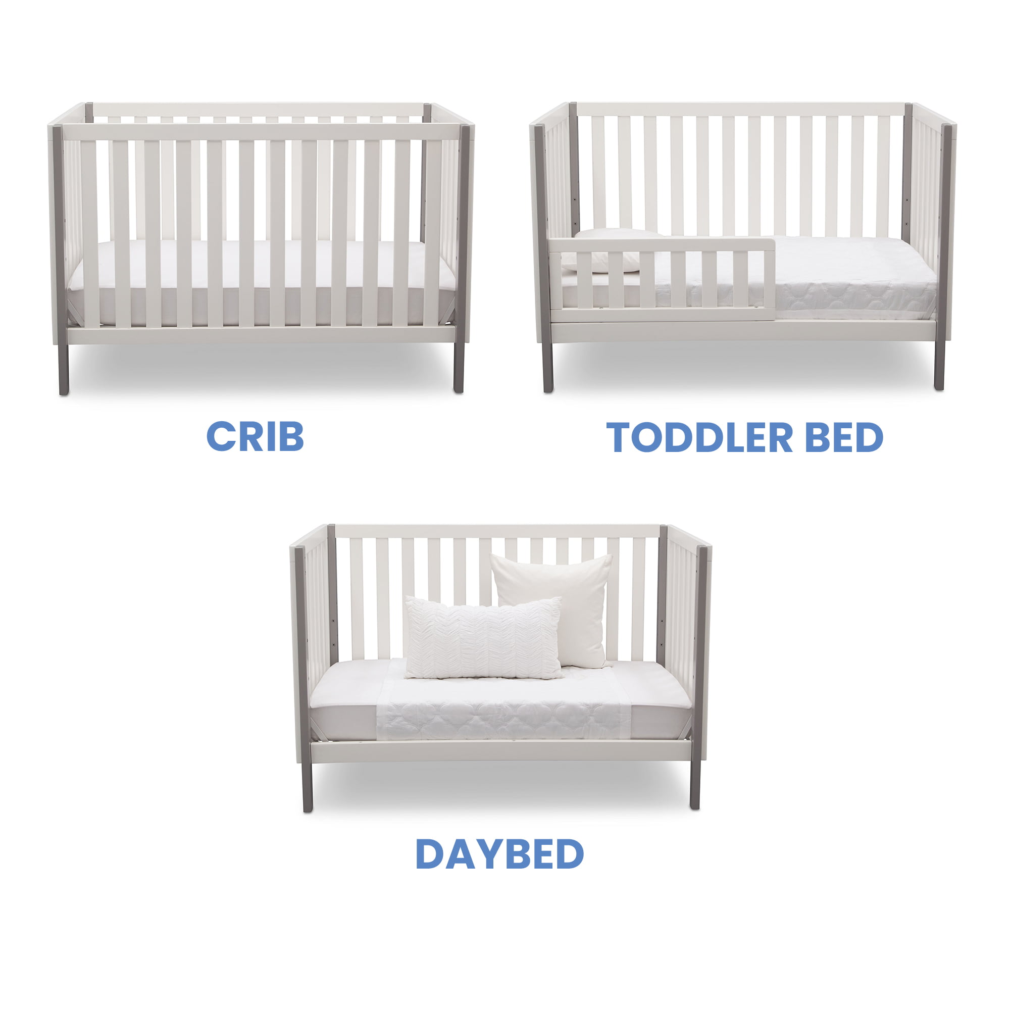 Delta Children Milo 3-in-1 Convertible Crib, Greenguard Gold Certified, Bianca White/Grey