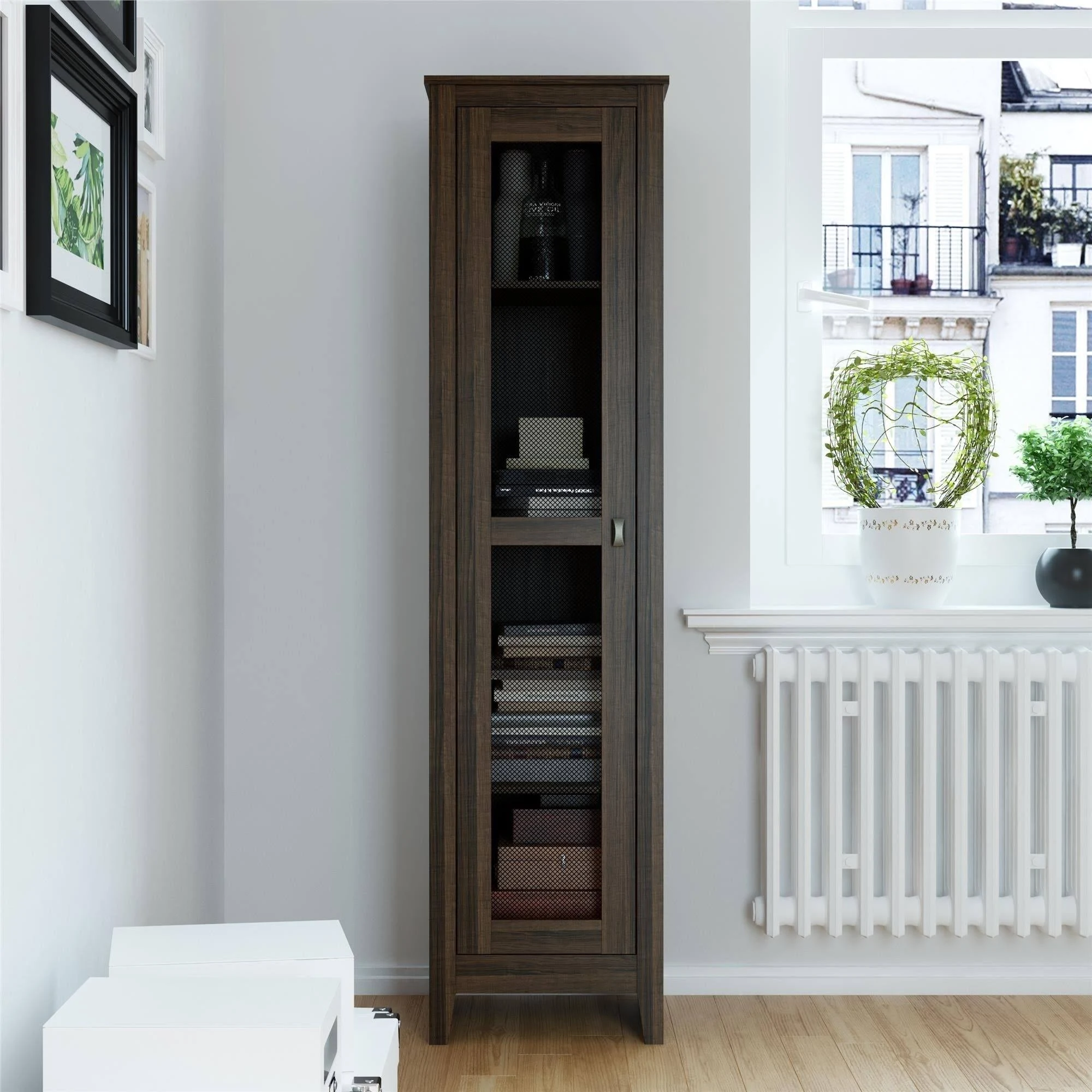 Avenue Greene Tamarisk 18 inch Wide Storage Cabinet with Mesh Door - Gold - Oak Finish DO08477