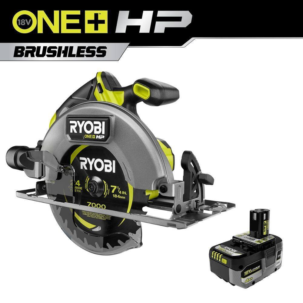 RYOBI PBLCS300B-PBP004 ONE+ HP 18V Brushless Cordless 7-1/4 in. Circular Saw with 4.0 Ah Lithium-Ion HIGH PERFORMANCE Battery
