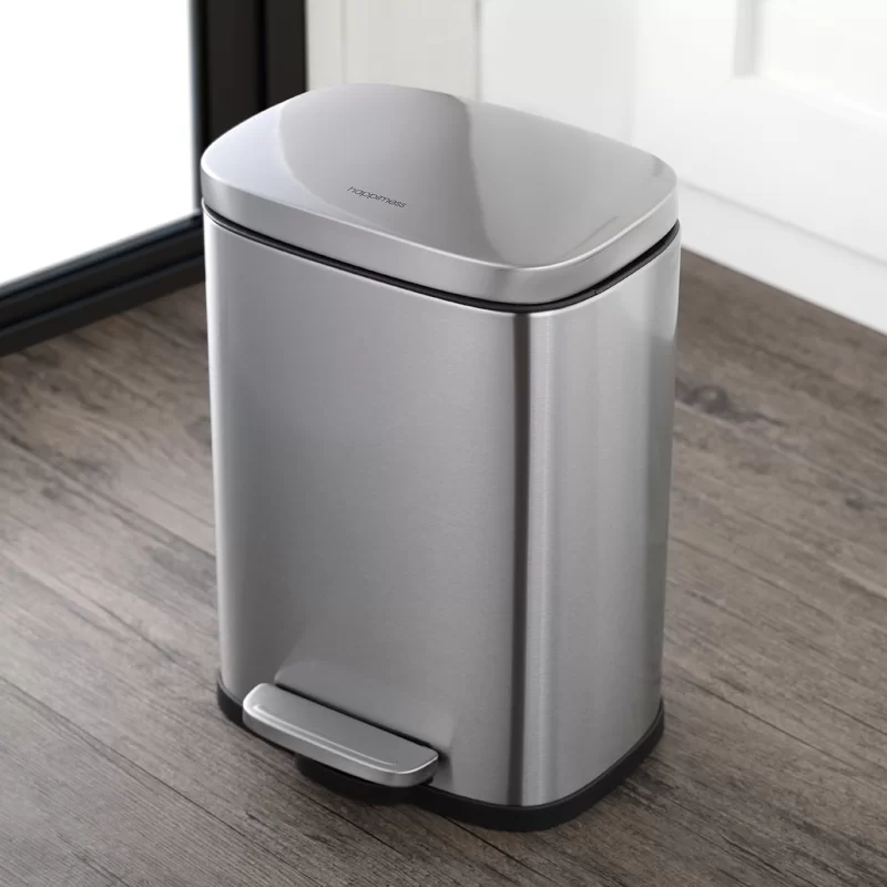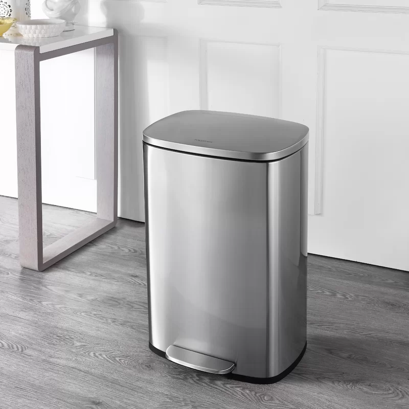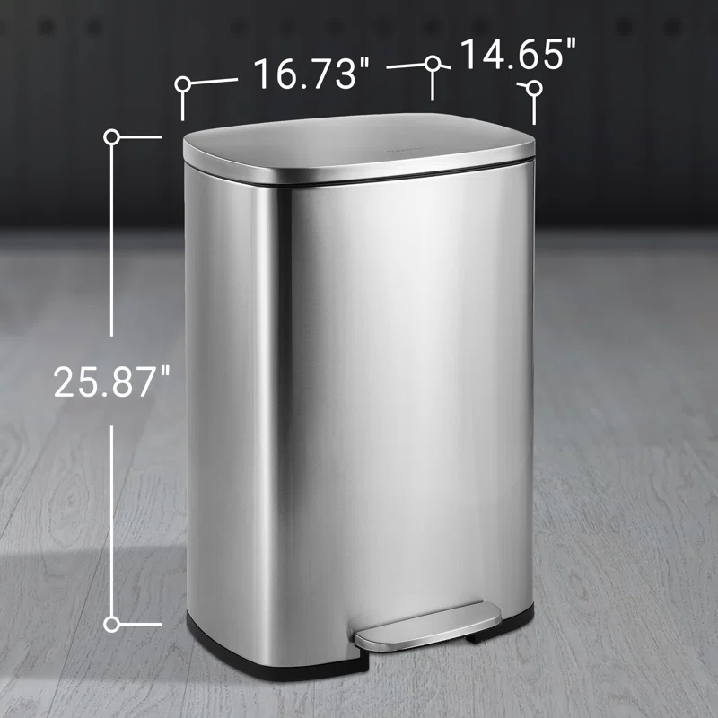 happimess HPM1006A Connor Rectangular 13 Gal. Stainless Steel Trash Can with Soft-Close Lid and Free Mini Trash Can