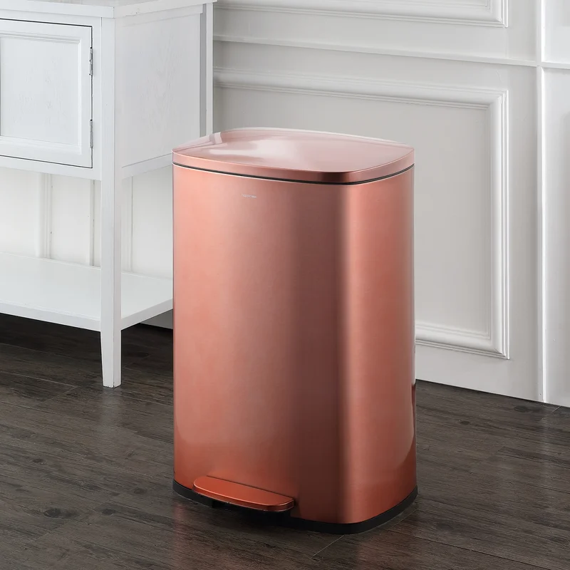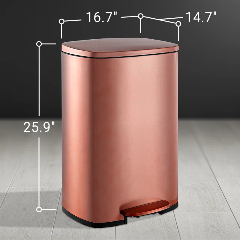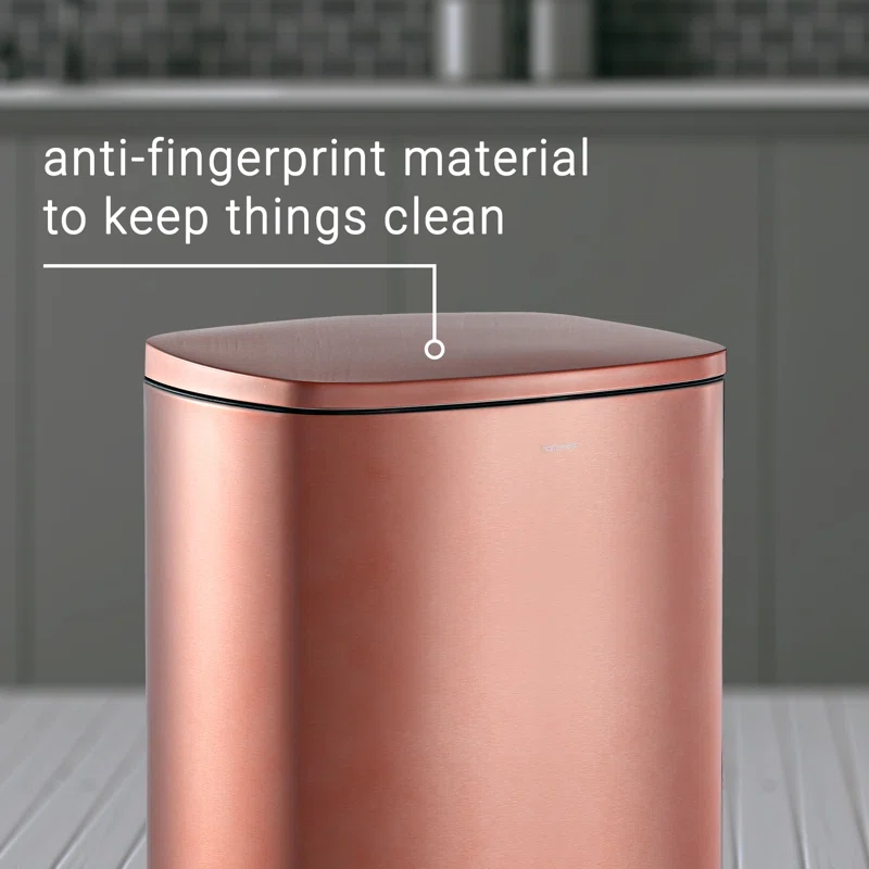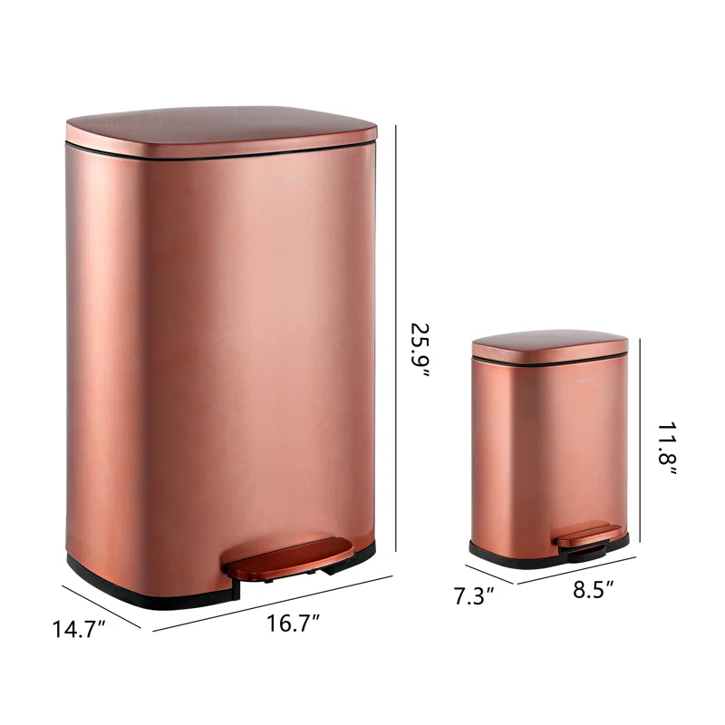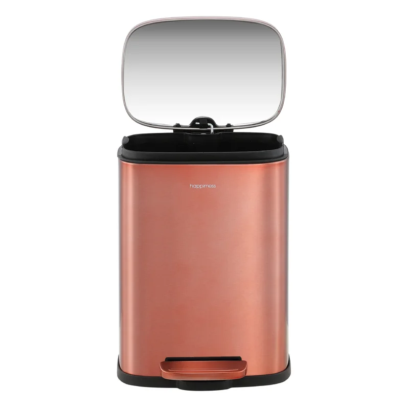 happimess HPM1006D Connor 13 Gal. Rose Gold Rectangular Trash Can with Soft-Close Lid and Free Mini Trash Can