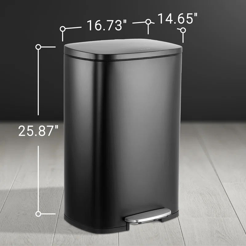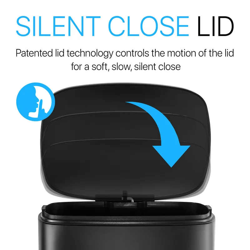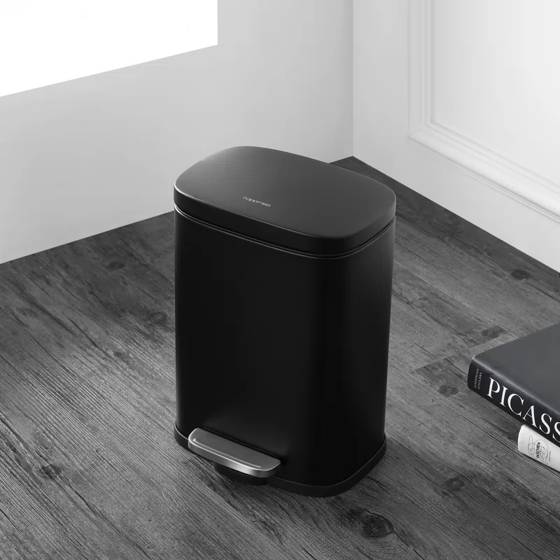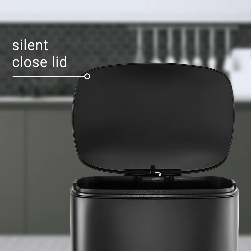 happimess HPM1006B Connor 13 Gal. Black Rectangular Trash Can with Soft-Close Lid and Free Mini Trash Can