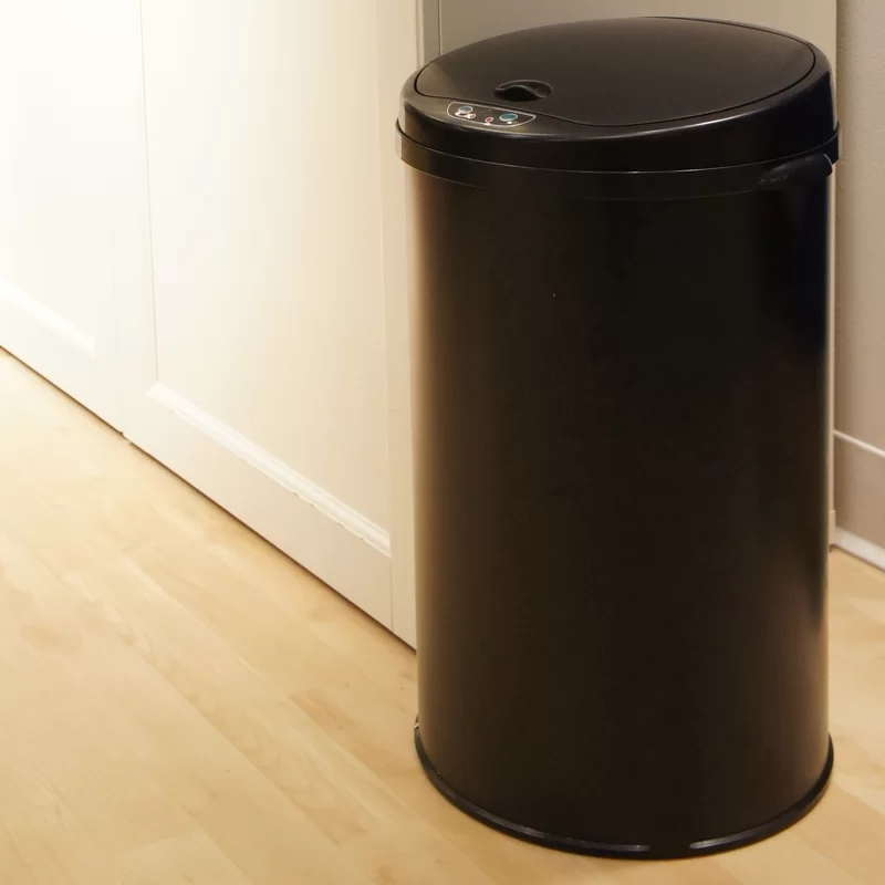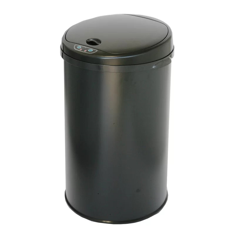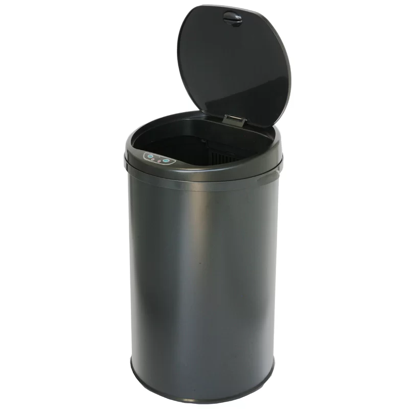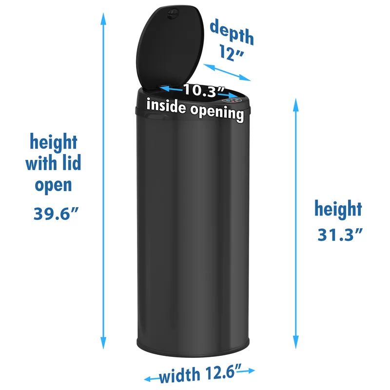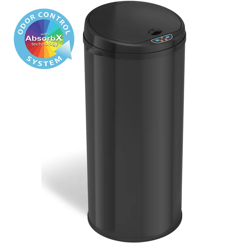 iTouchless MT13RB 13 Gal. Matte Black Touchless Round Motion Sensing Trash Can with Odor Filter