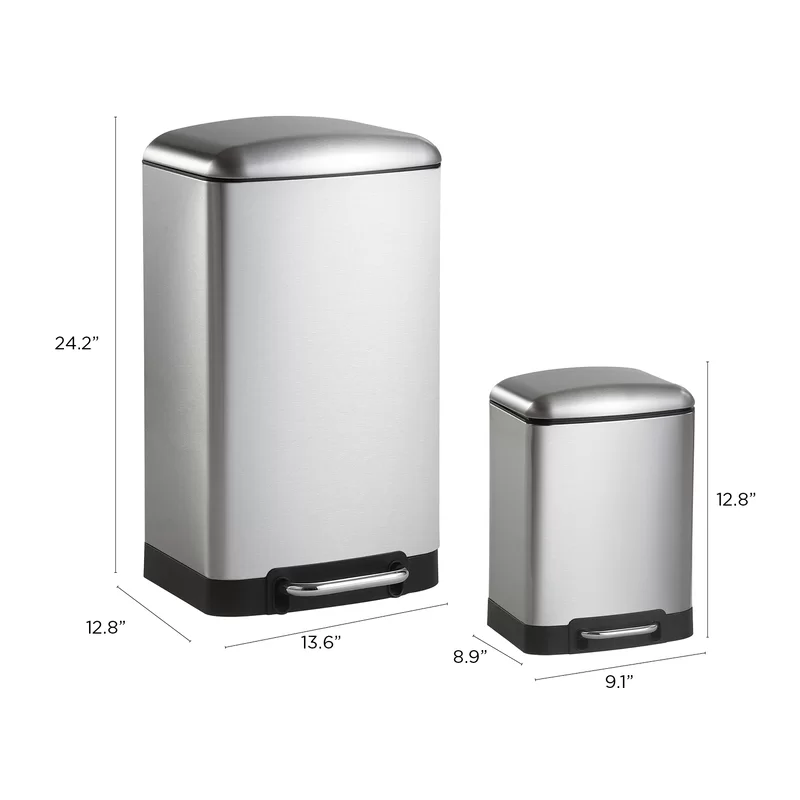 happimess HPM1008A Ashley 8 Gal. Rectangular Stinless Steel Trash Can with Soft-Close Lid and Mini Trash Can