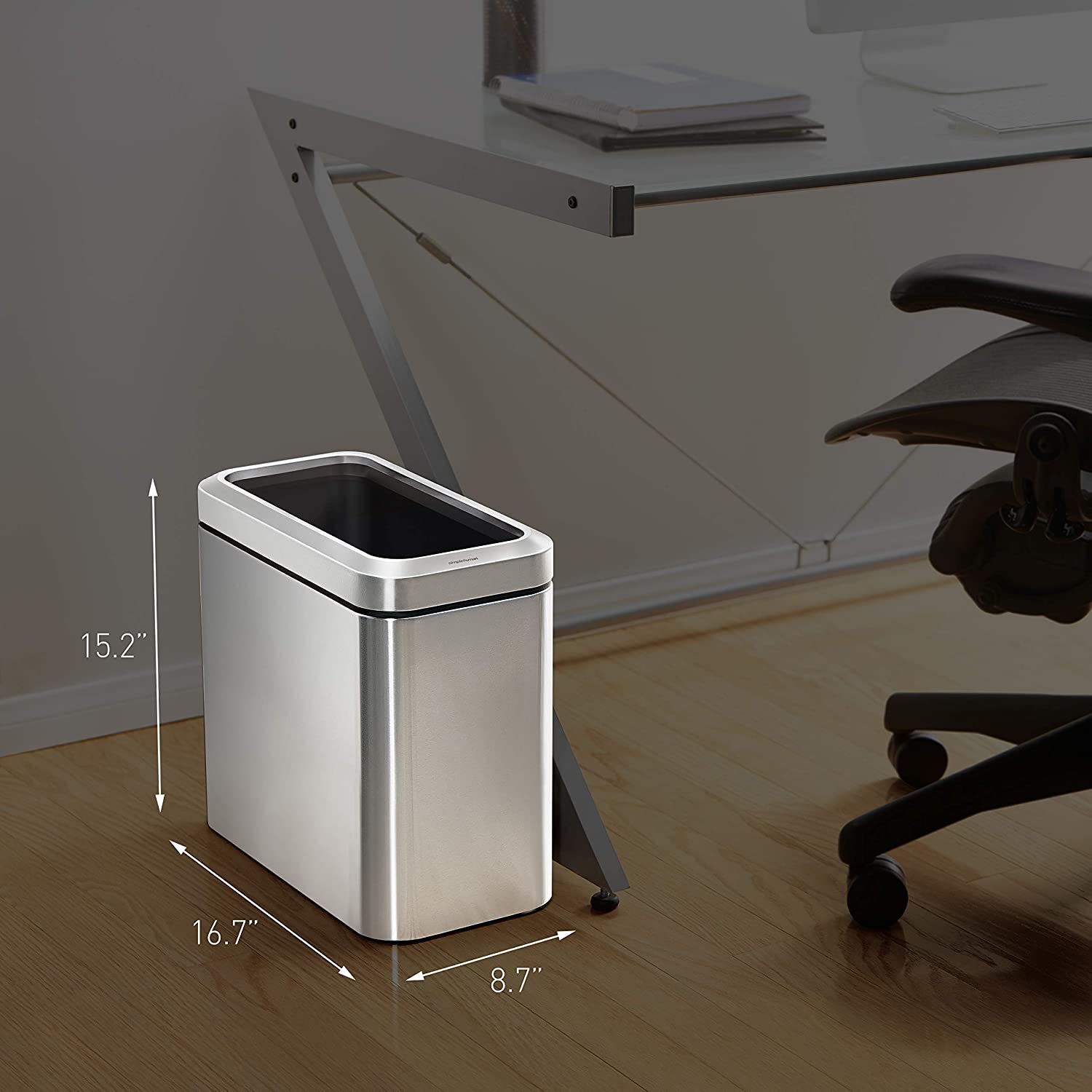 simplehuman CW1490 25 Liter 6.6 Gallon Slim Open Commercial Trash Can, Brushed Stainless Steel