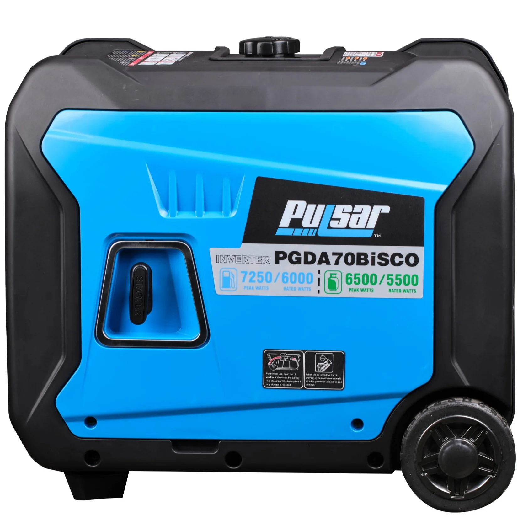 Pulsar 7.250 Watt Super Quiet Dual Fuel Inverter Generator with CO Alert and Remote Start